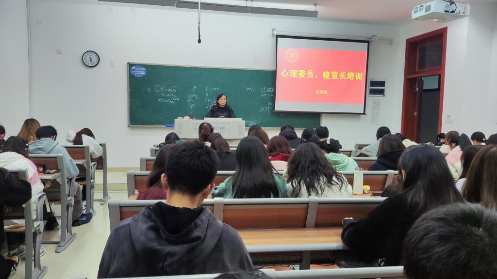为进一步落实我院“学院、系部、班级、宿舍——四级网络”心理危机防控体系,充分发挥心理委员、寝室长在大学生心理危机预防工作中的重要作用,beat365中文唯一官网于11月24日下午18时在铭传楼B404开展心理委员和寝室长专题培训会,21级和22级各班级心理委员和寝室长全体参与培训。