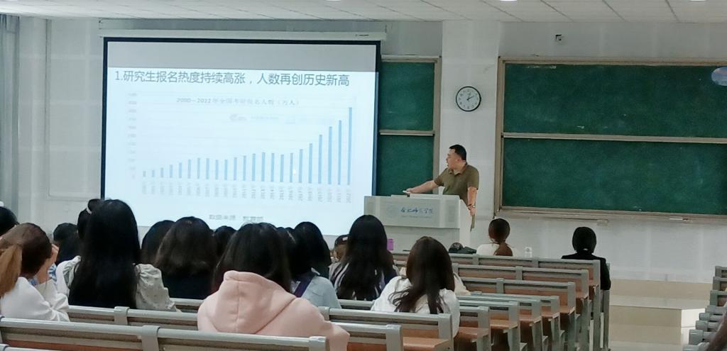 宣讲会上,张阿源分别从考研概述、硕士学位及新闻传播学科专业介绍、考研科目及录取分数线、新传学科硕士点高校分布情况、院校选择方法及技巧、考试科目的复习方法和本系历年考研录取情况七个部分全方面为同学们讲解新闻传播考研目前的整体形势,同时表示希望同学们把握机遇,做好选择,尽早准备,争取一次上岸。之后,四位老师共同解答同学们对考研的相关问题,并鼓励同学们踏实学习,尽早规划,追逐梦想。
