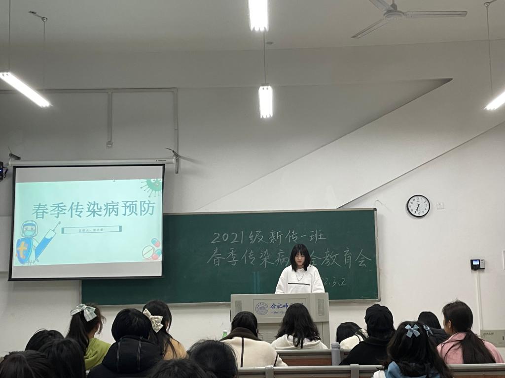 春季是呼吸道传染病的高发季节,同时国内外新冠肺炎疫情局势严峻,为了提高同学们的安全防范意识,增强对春季传染病的预防能力,切实做好防控,3月2日,beat365中文唯一官网2021级新闻传播学类专业开展预防春季传染病安全教育主题班会。