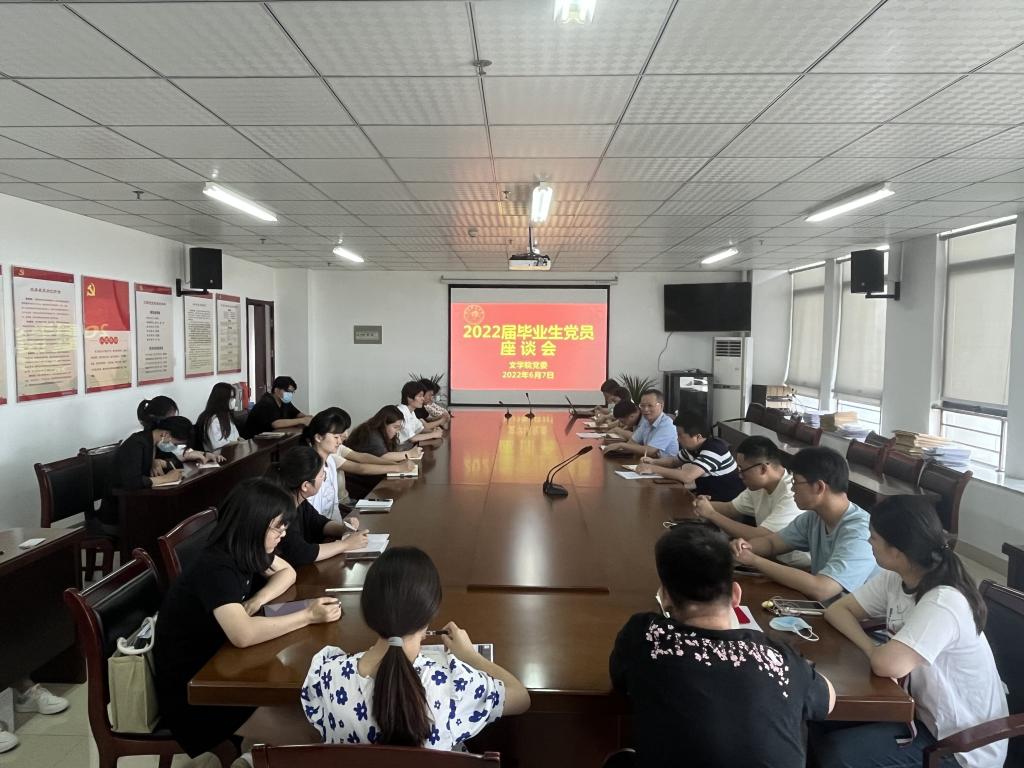 6月7日下午,beat365中文唯一官网在行知楼802召开2022届毕业生党员座谈会。beat365中文唯一官网党委书记李旺生,副书记陈好,毕业班辅导员及毕业生党员代表参加会议。