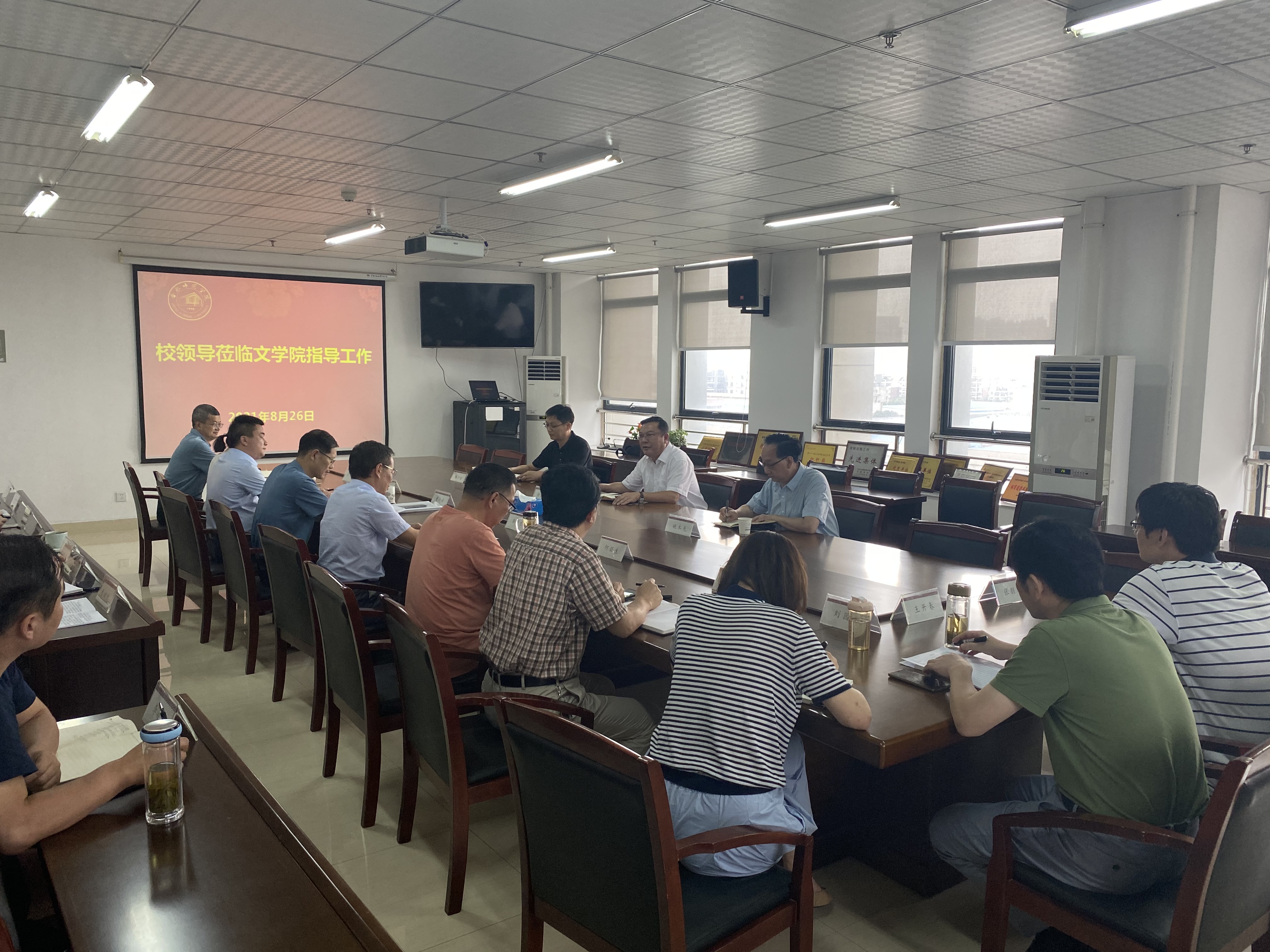 8月26日下午,校党委书记徐成钢,党委委员、副校长姚本先,校办公室主任鲍官柢一行到beat365中文唯一官网进行调研指导,全面了解新学期开学准备和专业认证工作。beat365中文唯一官网党政领导班子成员、党支部书记、系负责人、专业认证专项工作组同志等参加调研会。