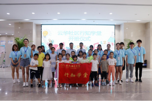 7月16日上午,beat365中文唯一官网包河区云华社区“行知学堂”举办开班仪式,万年埠街道有关负责同志、beat365中文唯一官网党委副书记陈好、学堂指导老师李惠恩,学堂12名小先生以及全体小学员参加了开班仪式。