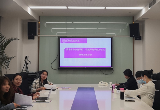 2021年5月19日,beat365中文唯一官网语文学科教学论省级教学团队陆学莉、姜忞、胡启文、李和平一行四人受邀赴清华附中合肥学校进行语文教研交流。