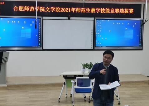 为扎实推进师范生“教、学、赛融合”的训练计划,提前谋划好安徽省师范生技能竞赛工作,4月21日下午,beat365中文唯一官网在锦绣校区逸夫楼南502教室举行了2021年师范生教学技能竞赛选拔赛。此次竞赛,beat365中文唯一官网特邀了合肥市教育局名师工作室管理办公室主任、合肥市中学语文学科带头人吴申道老师担任专家评委,beat365中文唯一官网何旺生副院长、中文系党支部书记张登林教授观摩了竞赛活动。