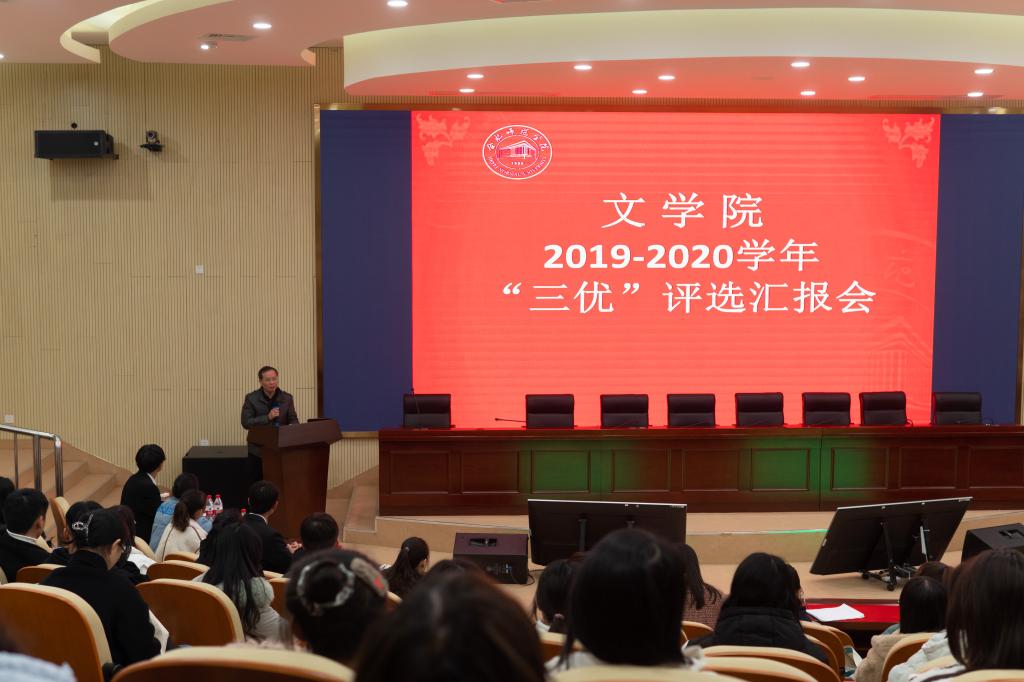 beat365中文唯一官网于11月24日晚在滨湖校区学术报告厅,11月25日中午在锦绣校区行知楼802会议室分别举办了2019-2020学年“三优”评选汇报会,出席本次会议的有beat365中文唯一官网党委书记李旺生、各年级辅导员以及各班级学生代表。