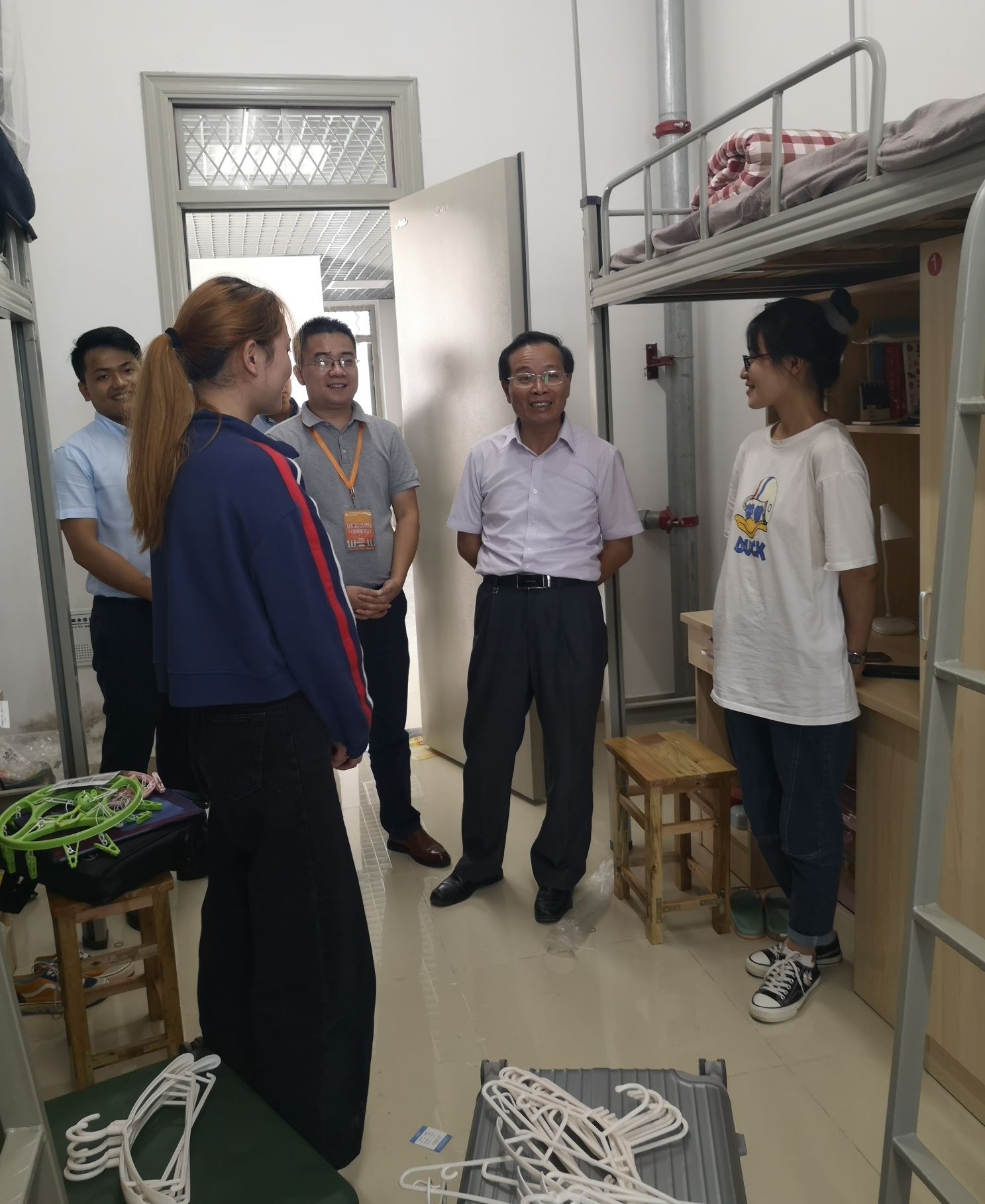 9月19日下午,beat365中文唯一官网领导与辅导员一行走访了学生宿舍,了解新生入住情况,提醒加强安全防范等。