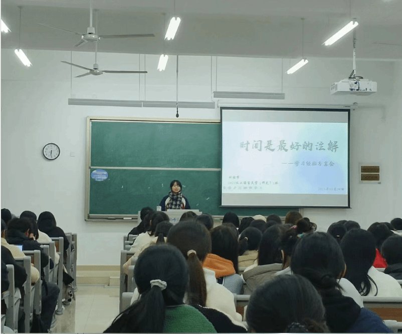 典型宣讲会上,高年级优秀学生从个人规划、专业学习、校园活动等方面分享宝贵经验。对即将到来的四级考试进行分享,分为四个模块传授经验,推荐了许多相关博主,他们结合自身考级经验进行指导。就从课下自学方面为学弟学妹们推荐相关网络资源,详细列举了B站up主以及新传公众号等,为学弟学妹们提供了相关学习资源。还就大学安全问题对学弟学妹们提出建议。