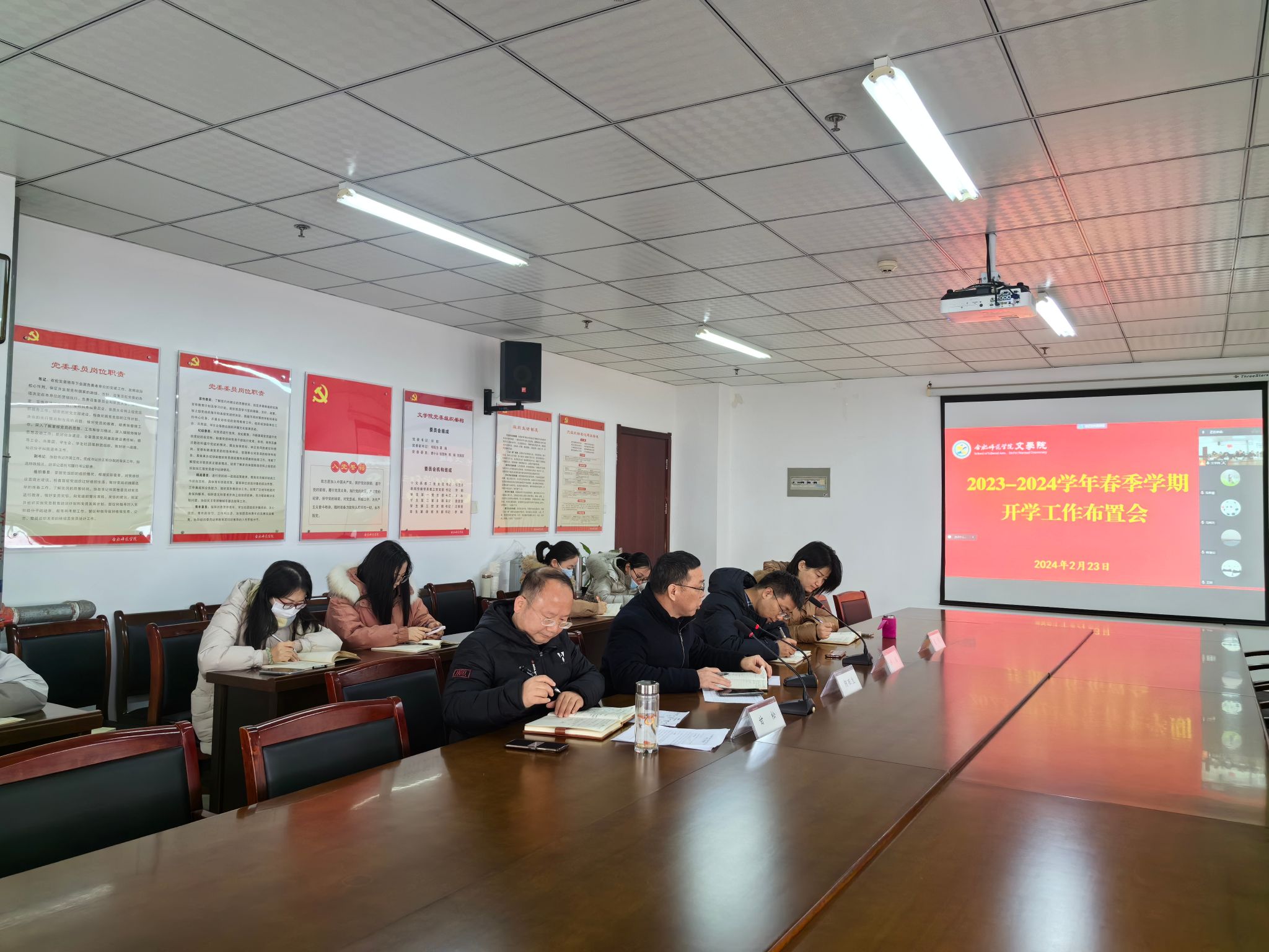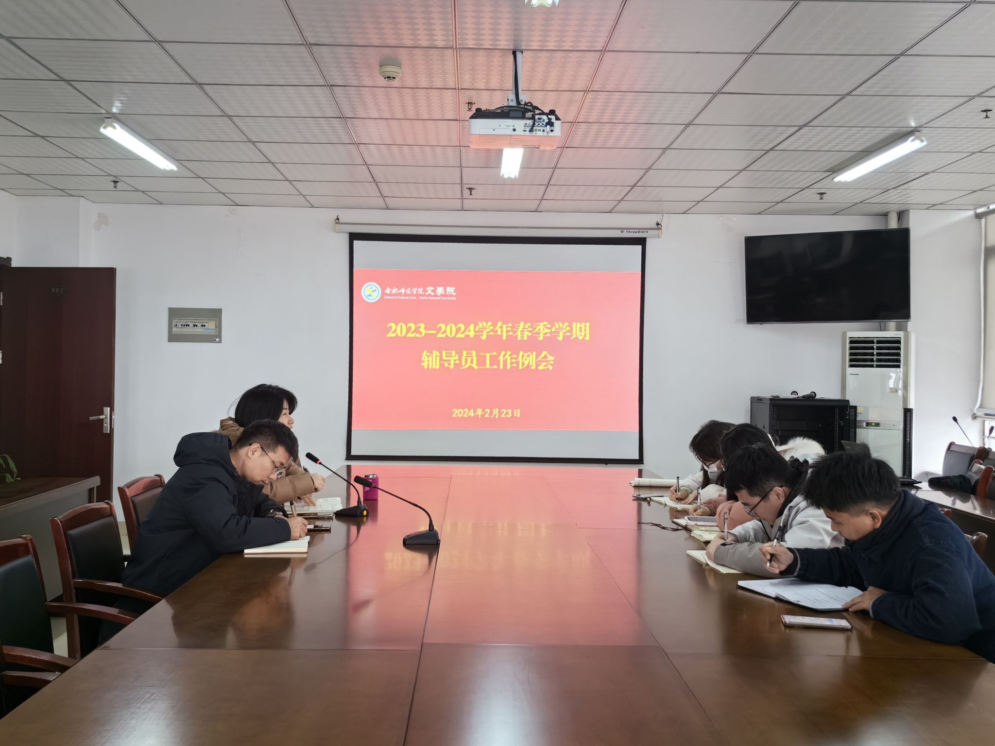 为了扎实做好新学期开学准备,确保开学各项工作顺利、有序进行,2月23日上午,beat365中文唯一官网在行知楼802室召开2023-2024学年春季学期开学工作布置会,会议以线上线下结合的方式召开,院领导班子成员、全体教职工参加会议。会议由党委书记许锃主持。