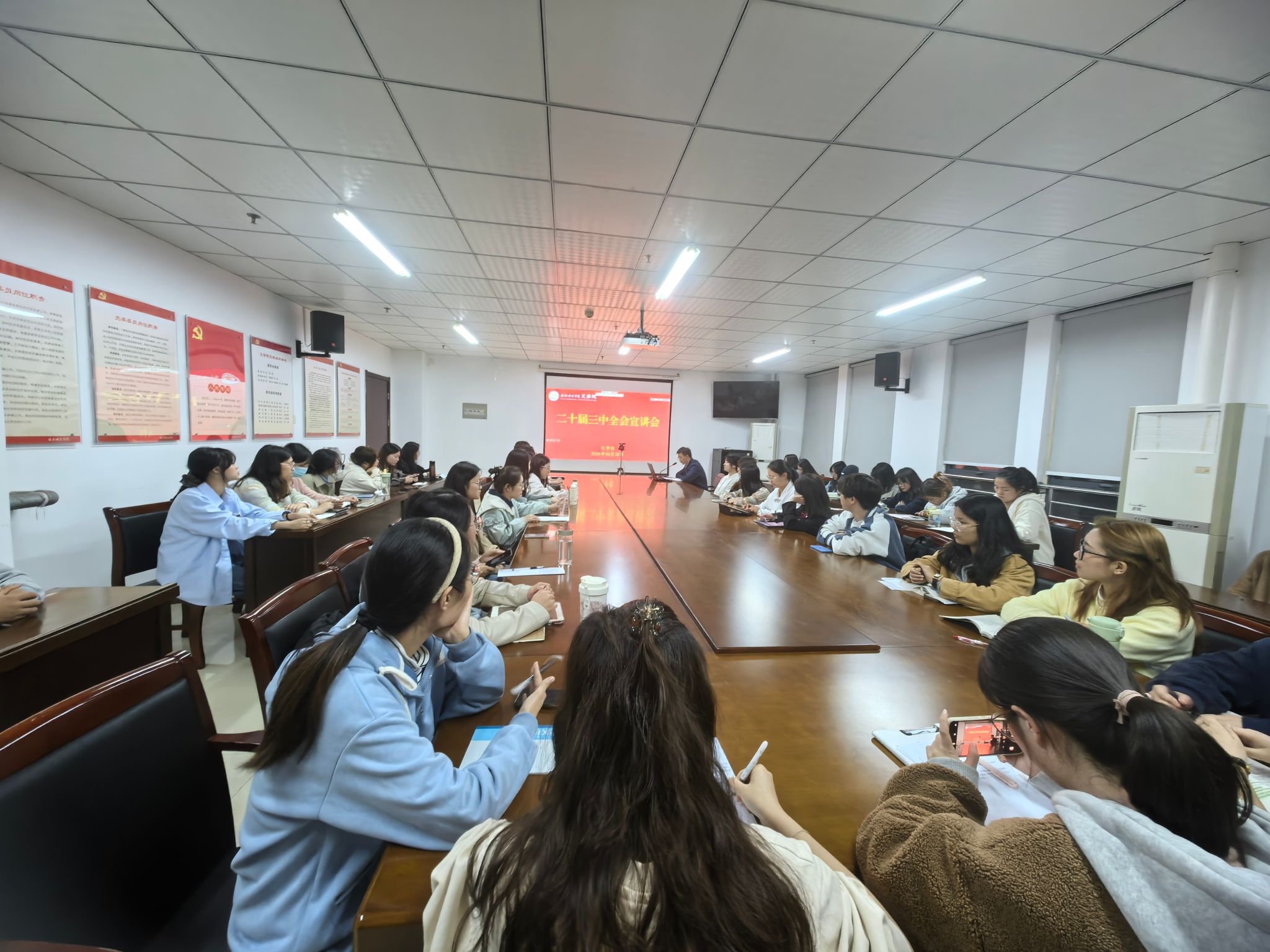 为深入学习宣传党的二十届三中全会精神,10月28日,beat365中文唯一官网党委在行知楼802会议室召开学习贯彻党的二十届三中全会精神宣讲会,院党委书记许锃为学生党员作专题宣讲。