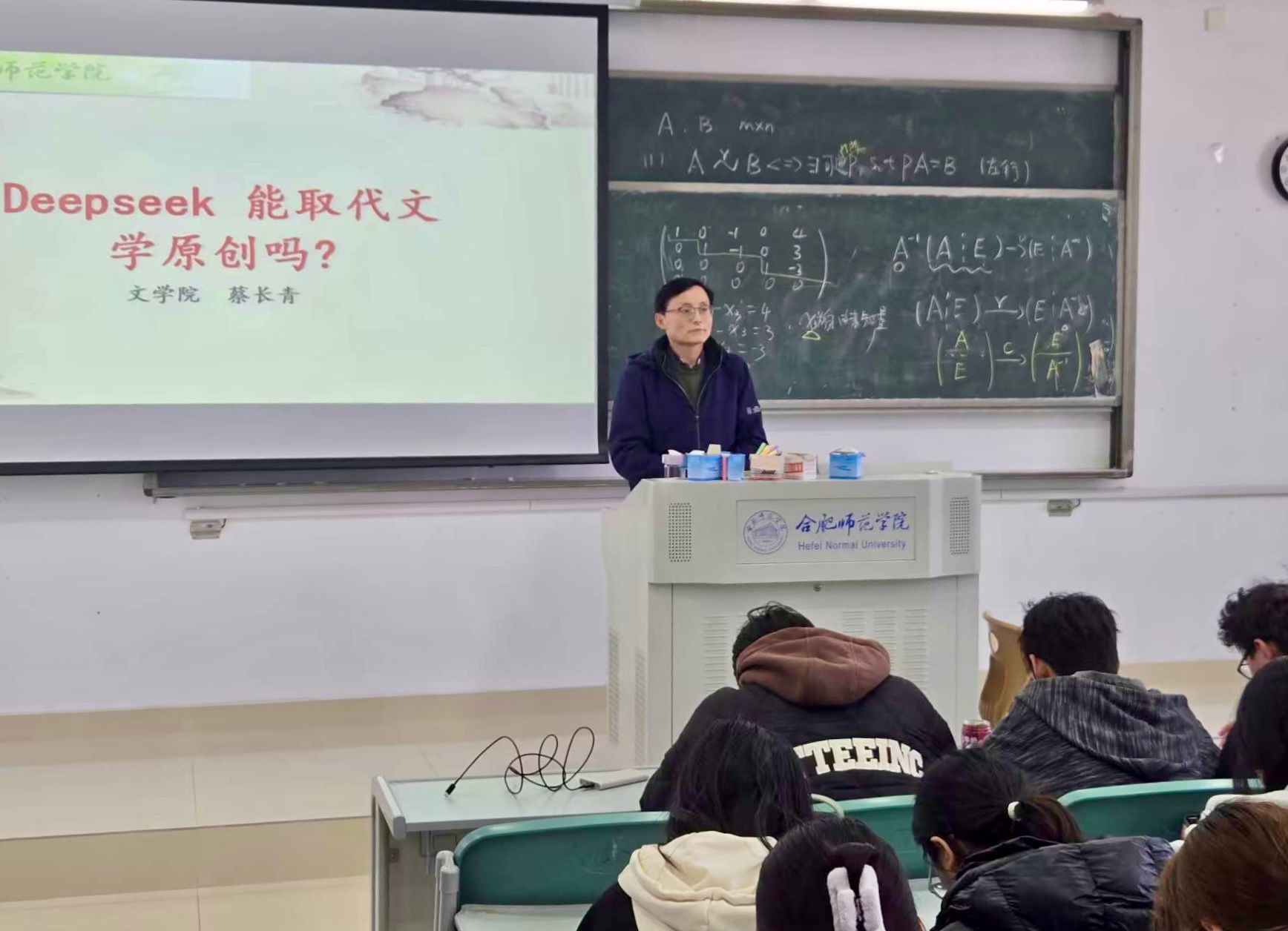 3月19日,beat365中文唯一官网“行知讲堂”在滨湖校区开讲,中文系蔡长青老师在博学楼A203教室作题为《DeepSeek能取代文学原创吗?》主题讲座,带领汉语言文学专业学生一同领略原创文学与AI的跨界对话。