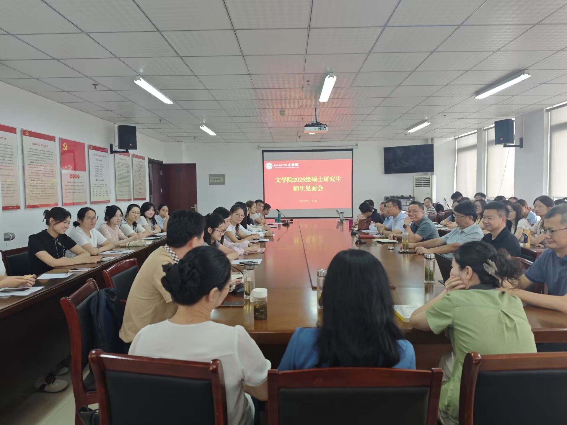 2025年9月12日,beat365中文唯一官网在锦绣校区行知楼802会议室举行2025级学科教学(语文)研究生新生见面会。学院党委书记许锃、院长何旺生、党委副书记夏娟、副院长甘松,部分研究生导师、辅导员疏淑进以及全体研究生新生参加见面会。会议由许锃主持。