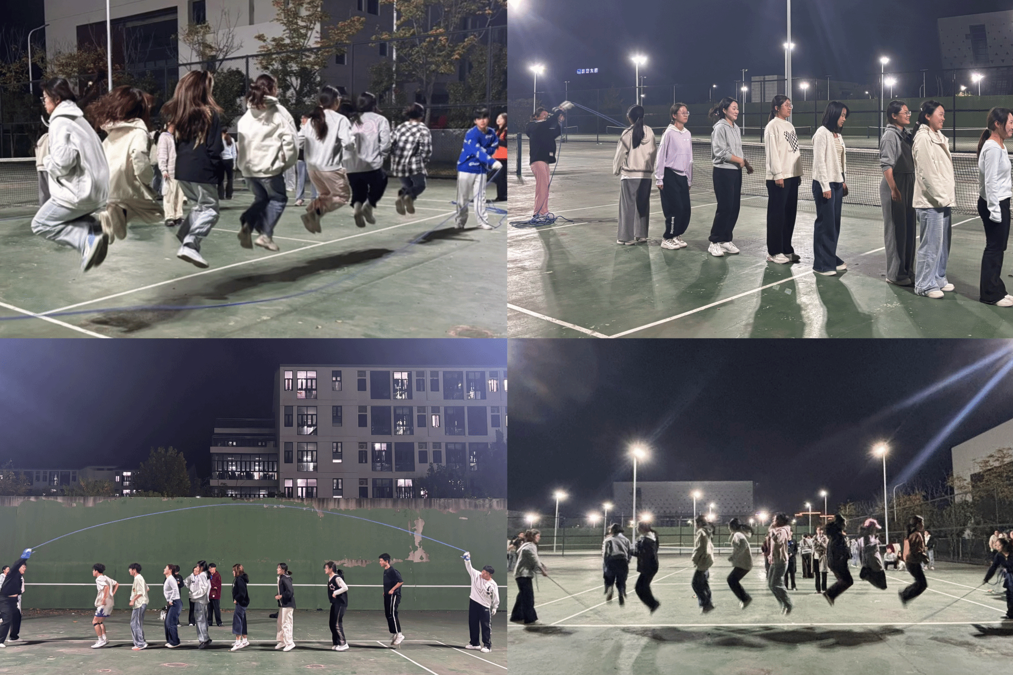 正式开赛前,各班队伍提前抵达候场区,为即将到来的比赛热身。队员们相互提醒技术细节,反复模拟入绳时机与跑动路线,不时传来“注意间距”“跟紧前面”的叮嘱声。有的队伍围成一圈,手掌交叠,齐声喊出鼓舞士气的口号;有的班级则安静聚集,聆听队长最后的战术安排。整个候场区气氛既紧张又热烈,每个人的眼中都闪烁着对比赛的期待与集体的荣誉感。