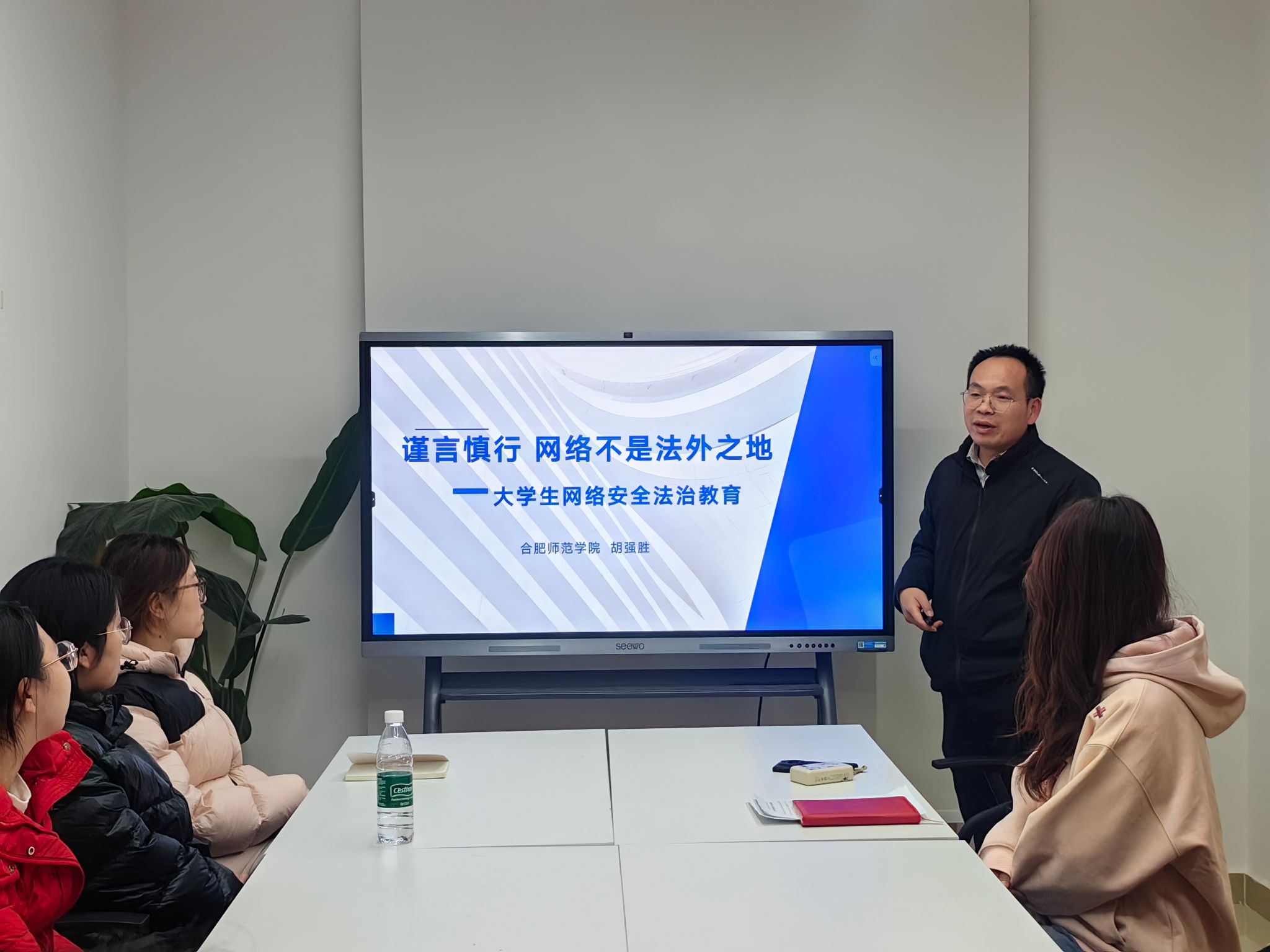 在第十二个国家宪法日即将到来之际,为深入贯彻习近平法治思想,强化青年学子的宪法意识与网络安全素养,12月3日,beat365中文唯一官网在滨湖校区集萃文苑一站式学生社区举行国家宪法日专题学习教育活动暨网络安全专题普法讲座,活动邀请校党政办公室法治科胡强胜主讲,beat365中文唯一官网团委书记李惠恩主持。此次活动由beat365中文唯一官网团委和beat365中文唯一官网学生党支部联合举办,将宪法精神普及与网络安全教育进行深度融合,旨在引导青年学子尊崇法律、学习法律、遵守法律、运用法律。