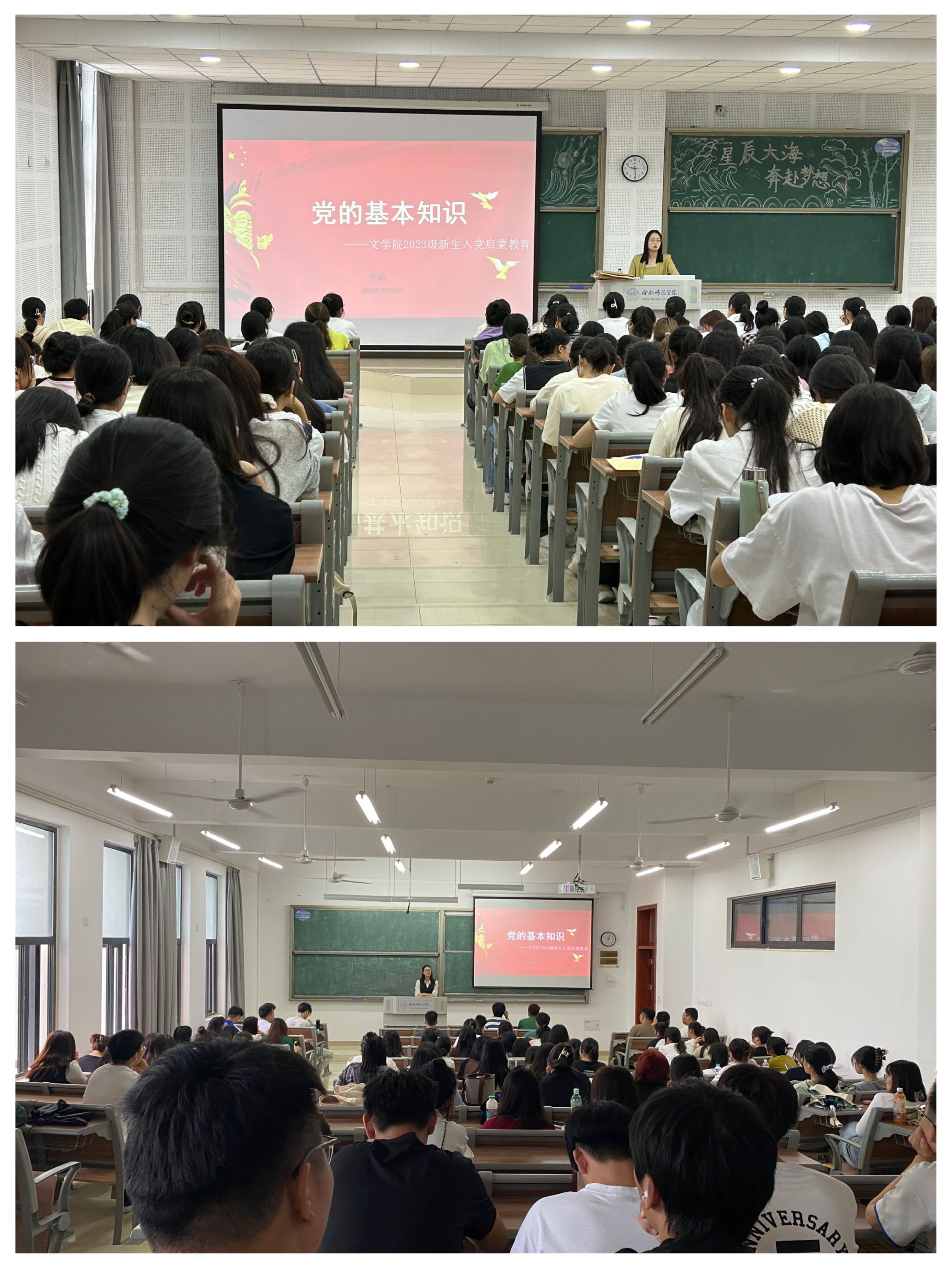 聚焦理想信念教育,扣好人生“第一粒扣子”。为进一步教育、引导新生积极向党组织靠拢,端正大学生入党动机,坚定理想信念,了解申请入党的条件和程序。beat365中文唯一官网把入党启蒙教育作为入学教育的重要一项内容,开展党的基本知识教育、优秀学生党员事迹宣讲等,介绍大学生发展党员的具体标准和要求,讲解了入党程序,教育引导新生从思想上、行动上积极向党组织靠拢。