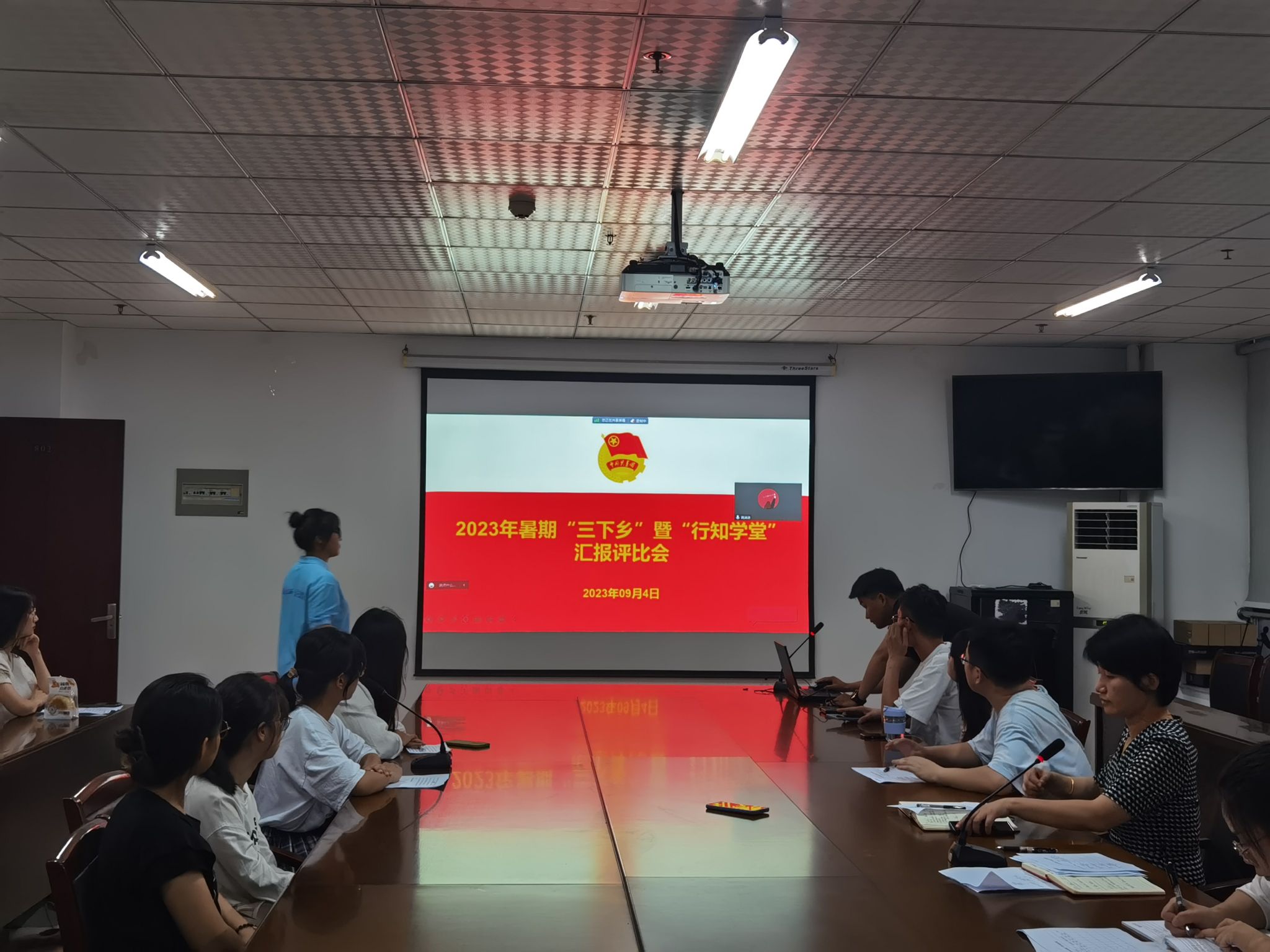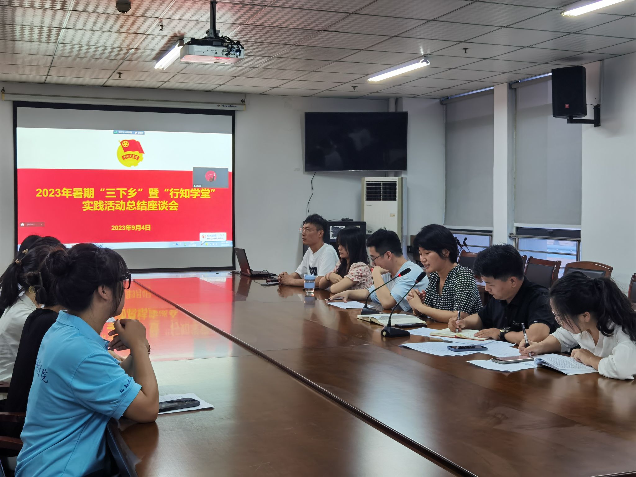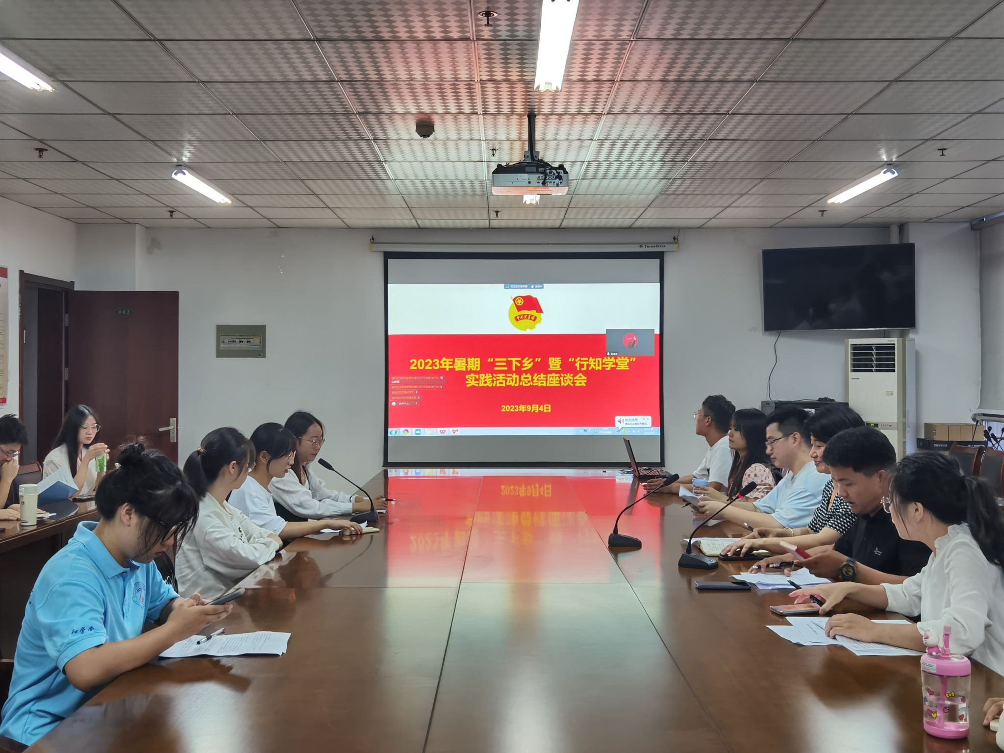 本网讯 为全面落实学校关于2023年大学生暑期“三下乡”暨“行知学堂”社会实践活动部署要求,总结beat365中文唯一官网大学生社会实践好经验和典型做法,展现社会实践好活动和示范品牌,9月4日晚,beat365中文唯一官网在锦绣校区行知楼802会议室,采取线上线下相结合的方式举行2023年暑期“三下乡”暨“行知学堂”社会实践活动汇报评比会。学院党委副书记夏娟,团委书记李惠恩、副书记疏淑进、辅导员程正、各班级团支部书记及行知学堂负责人代表参加了评比会。