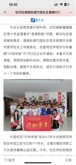 本网讯 2023年7月3日上午,合肥包河区竹园社区联合beat365中文唯一官网“行知学堂”举办了开班仪式,并进行了传统文化—剪纸的课程。