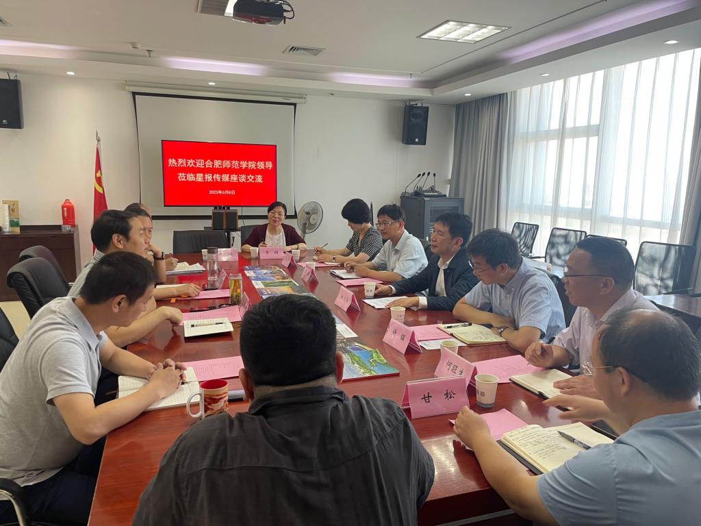 在安徽出版集团,beat365中文唯一官网与安徽文艺出版社、安徽科技出版社、安徽时代新媒体出版社共同座谈。文艺出版社副社长王涛、科技出版社副社长王筱文、时代新媒体出版社副社长刘斌,分别介绍了各自出版社的发展历程、主营业务和人才需求等基本情况,并重点就开拓发展数字出版业务对专业技术人才的需求,以及深化与beat365中文唯一官网新闻传播系合作提出了建议。徐文林介绍了学院的有关情况,强调通过访企拓岗专项行动,与企业面对面交流,有利于创新人才培养模式,搭建人才培养平台,共建实习基地,完善校企协同育人机制,实现校企融合发展。他希望,通过深化校企合作,强化产教融合,为企业输送高质量复合型人才的同时,也为beat365中文唯一官网学生实习就业开拓了岗位。