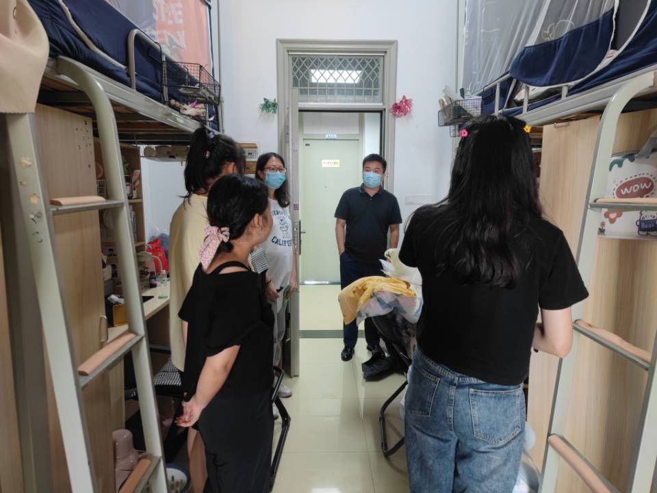 走访中,李旺生、陈好一行查看了宿舍住宿环境,与学生亲切交流,详细询问了学生对新环境是否适应,食堂饭菜是否可口,并认真倾听了学生对此次搬迁工作的意见和建议。李旺生对学生服从大局、听从安排,支持和配合学校工作的行为表示赞赏,并嘱咐同学们在内务整理中注意安全、互相帮助,安全有序地入住“新家”。对于返校的学生,强调大家落实三天两检核酸检测制度,遵守学校疫情防控政策,希望大家安心学习的同时,一定要健康作息、遵纪守规,注意勤通风、勤洗手、戴口罩,以实际行动做好疫情防控防护,展现beat365中文唯一官网学子的担当与作为。