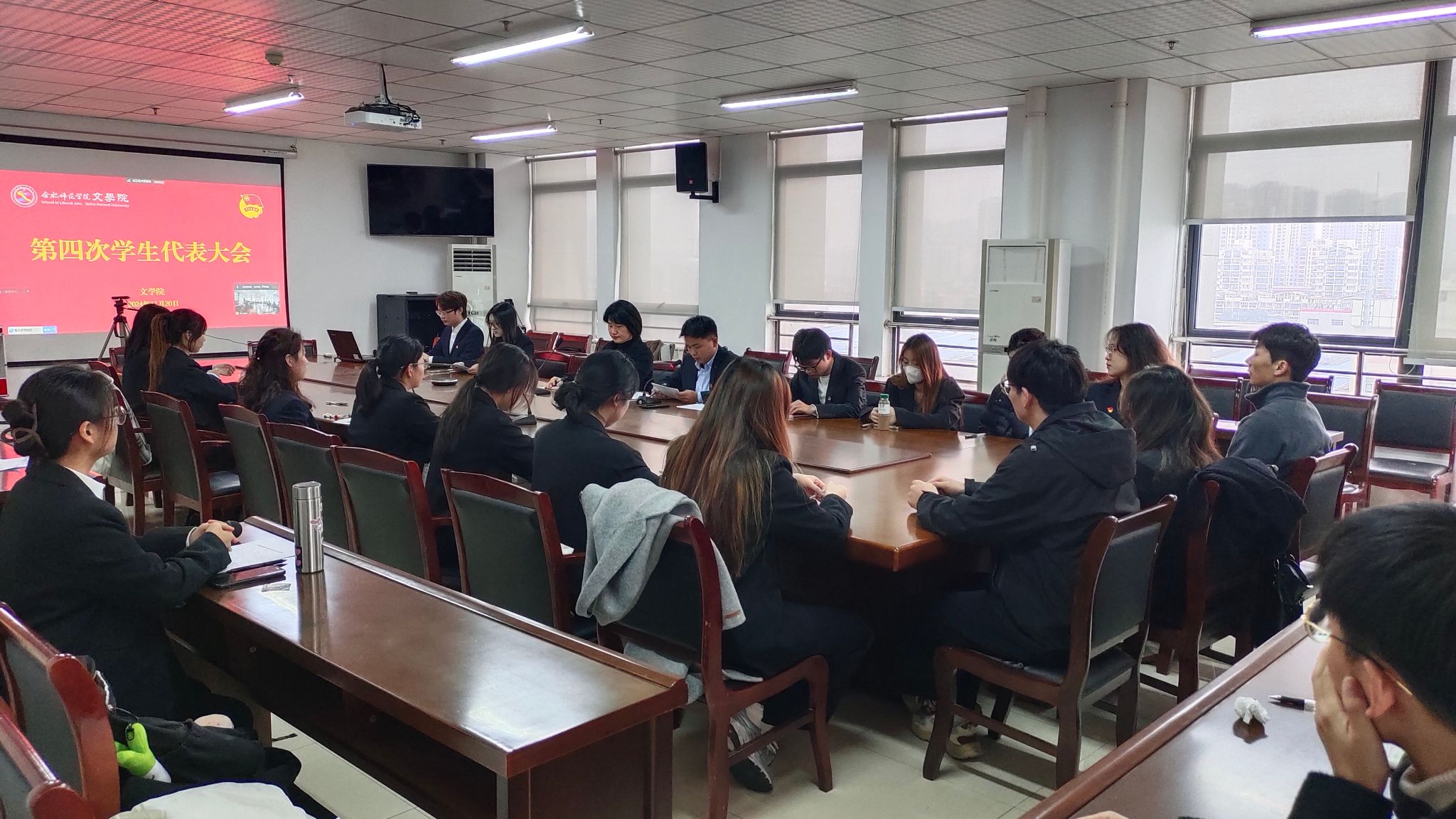 11月20日,beat365中文唯一官网第四次学生代表大会在锦绣校区行知楼802会议室召开,滨湖校区在铭传楼B306设分会场。beat365中文唯一官网党委副书记夏娟、团委书记李惠恩,来自beat365中文唯一官网各班级的53名学生代表参加会议。会议由李惠恩主持。