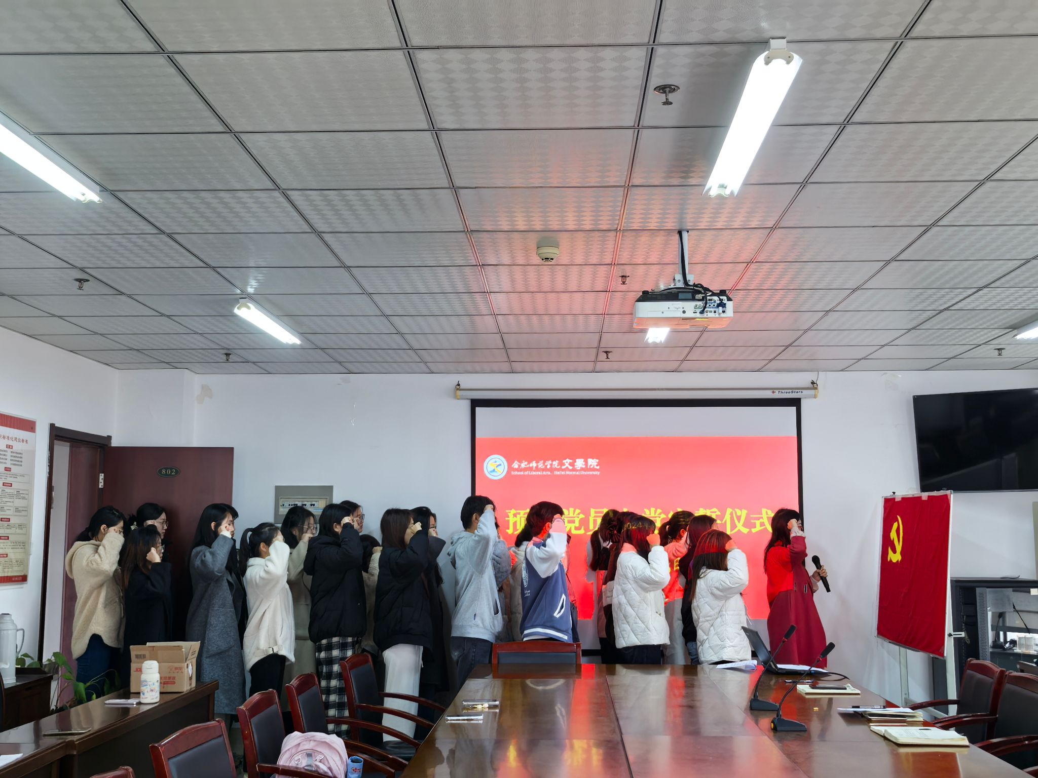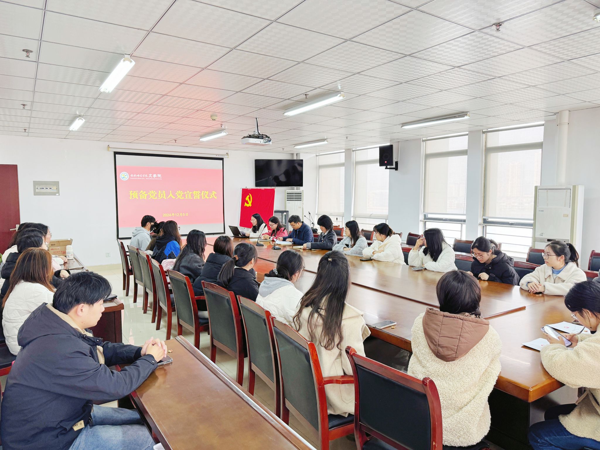 为了进一步增强新党员入党荣誉感,12月5日,beat365中文唯一官网在行知楼802室举行2024年下半年新党员入党宣誓仪式。学院党委书记许锃、党委副书记夏娟、学生第二党支部书记曹甜甜,25名新党员参加此次宣誓仪式。宣誓仪式由组织员疏淑进主持。