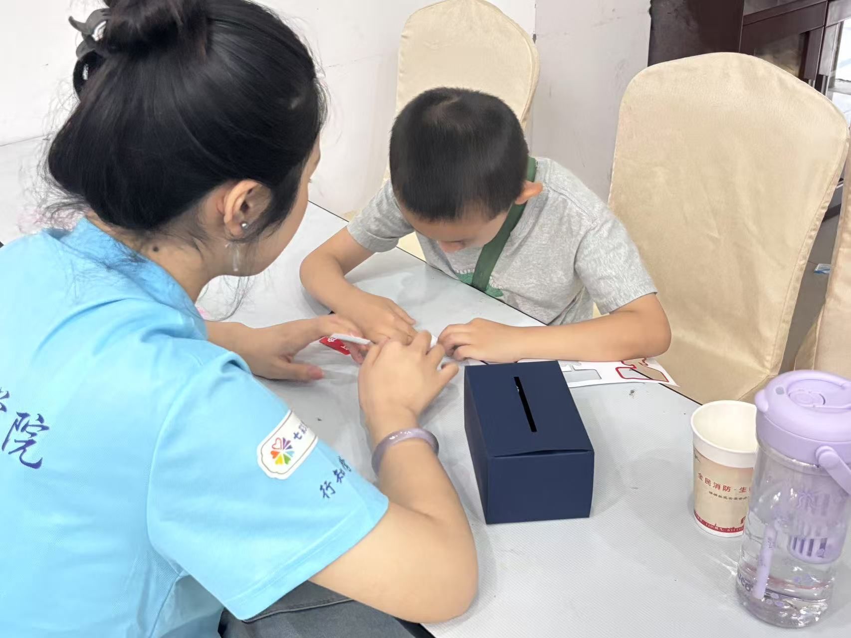 为了让学员们深入理解“可见性”背后的科学原理,学堂依托“七彩假期”公益项目提供的材料包,设计了极具参与感的“暗箱实验”。小学员们被分为4个小组,在“小先生”们的指导下动手组装实验箱——这个模拟夜间低光环境的装置,将成为检验“可见性”的关键道具。当孩子们依次将红、黄、蓝、黑等不同颜色的卡纸放入暗箱,原本认为“很醒目”的红色在模拟司机注意力分散的情境下,竟多次出现“视而不见”的情况,这一发现让不少孩子露出了惊讶的表情。