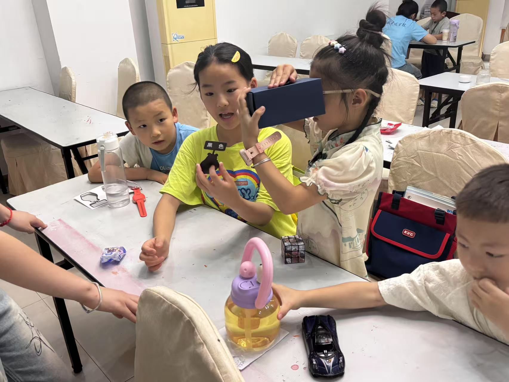 实验的转折点出现在反光条登场时。“小先生”们为每位学员分发反光条,指导他们小心翼翼地贴在卡纸上。当贴有反光条的卡片再次被放入暗箱,原本模糊的色块瞬间变得清晰亮眼,孩子们不约而同发出“哇”的惊叹声。“原来小小的反光条这么厉害!”一位小学员举着自己的实验成果,兴奋地向同伴展示,真实的感官体验让“反光条能提升夜间可见性”的知识点变得触手可及。
