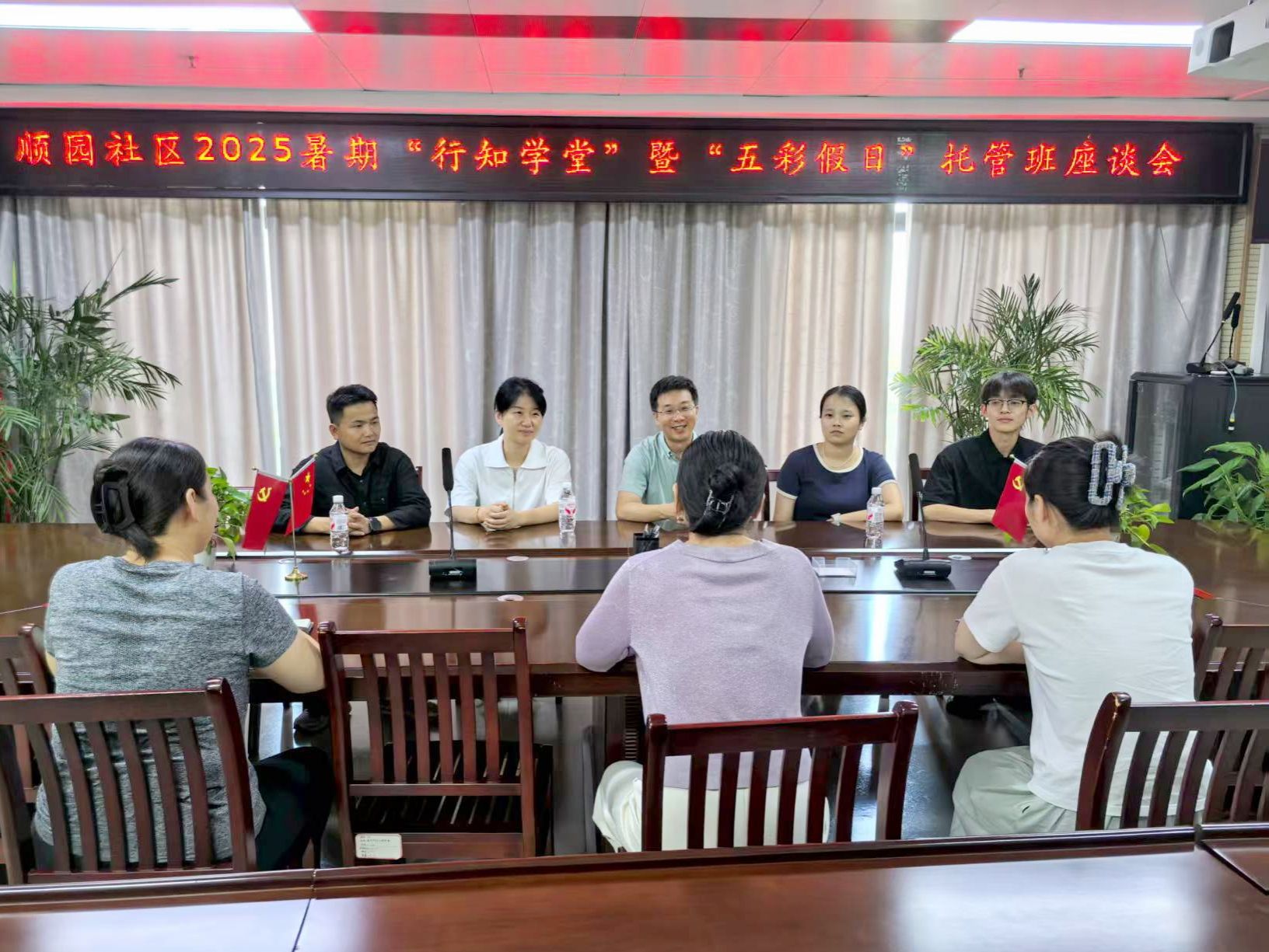双方进行了座谈交流。许锃对顺园社区为大学生提供实践平台表示感谢,回顾了学院与顺园社区围绕大学生实践拓展展开的合作历程。介绍了学院专业特色与育人理念,以及当前以服务地方社会发展、助力乡村文化振兴为目标推出的经典文化国粹教育系列活动,并对后续深化交流合作给予了美好的展望。许锃表示,行知学堂“小先生”们在社区的暑期授课不仅是对陶行知“教学做合一”教育理念的践行,更是青年学子服务社会的生动实践。学院将持续推动多方合作,鼓励更多学子走进社区,用专业所学为青少年儿童成长赋能。夏娟介绍beat365中文唯一官网行知学堂开办情况,表达进一步加强合作、共建的打算安排。