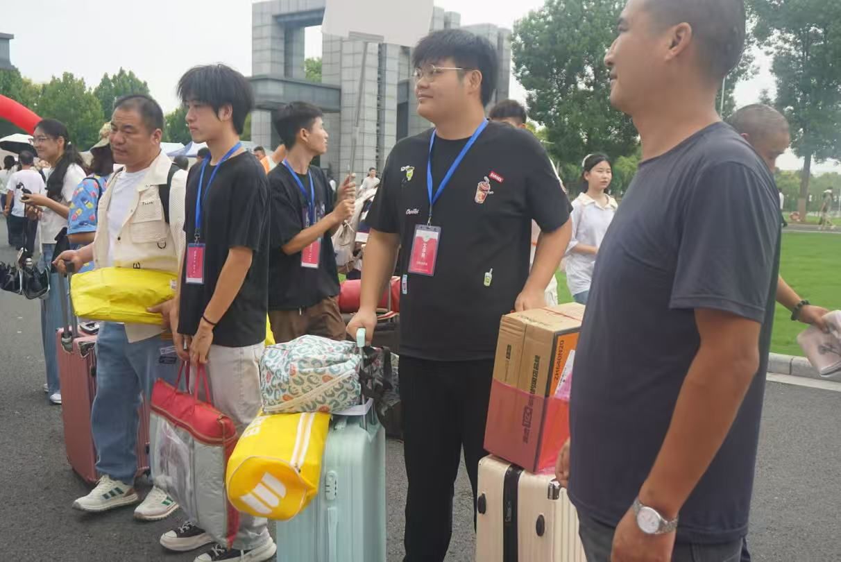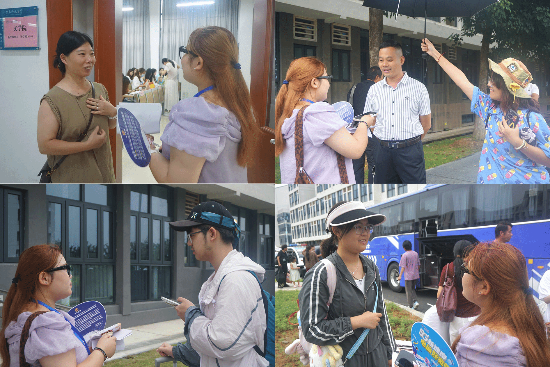 校园小径间,身着统一服装的文院志愿者更是流动的“暖心坐标”。遇新生对校园路线迷茫,不仅清晰指引宿舍、食堂方向,还贴心分享校园生活小技巧。即便细雨打湿了肩头,他们的脚步依旧轻快,笑容依旧明朗。学院领导也亲临迎新现场,驻足各服务点位查看工作进展,及时协调解决问题,用实际行动为迎新工作保驾护航,让家长放心、让新生安心。
