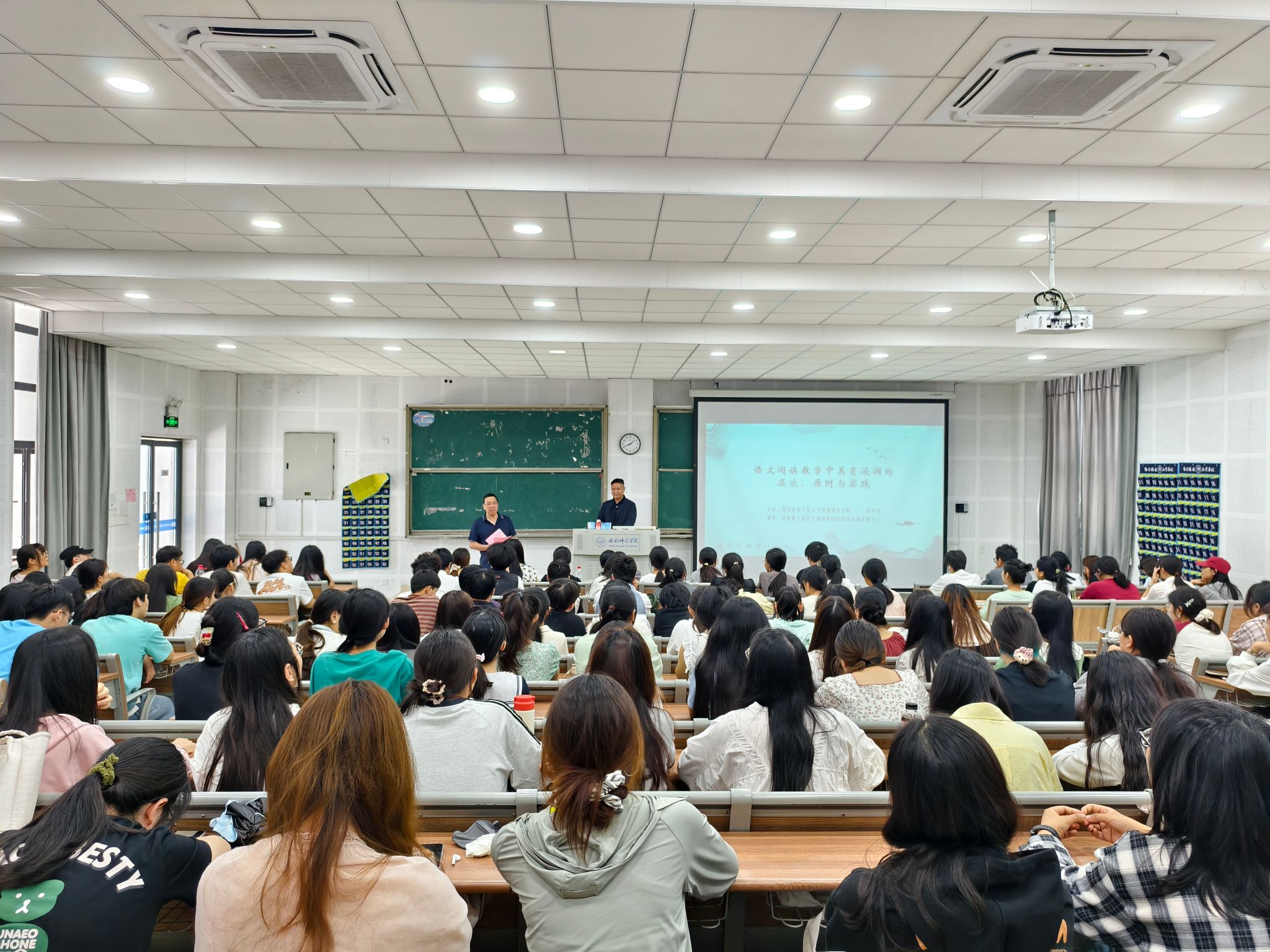 5月16日,beat365中文唯一官网“经典悦读”讲坛系列学术报告第四场在滨湖校区开讲,此次讲坛邀请南京信息工程大学汲安庆教授,为学生们带来《语文阅读教学中美育浸润的层次、原则与实践》主题报告。报告会由beat365中文唯一官网院长何旺生主持。
