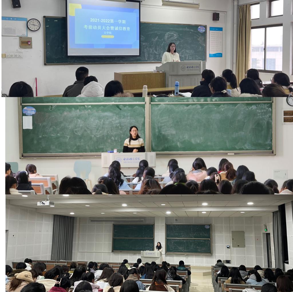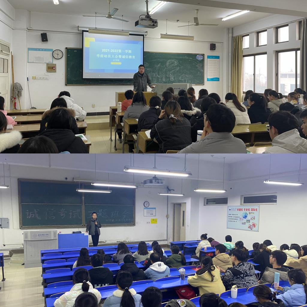 会上,各年级辅导员带领大家重新学习了《国家教育考试违规处理办法》和《beat365中文唯一官网学生考试违规处理办法》的相关规定,主要围绕学生的诚信教育、考风考纪的严肃性和重要性、考试作弊违纪处分教育以及考试作弊的危害等,倡导“诚信考试”,使学生能充分认识到考试的严肃性和考试违纪、舞弊的危害性,形成“诚信考试”和自觉杜绝作弊的共识。同时要增强现代意识和竞争能力,以拼搏进取的精神,全面、认真地开展复习,诚实、冷静地迎接四六级和期末考试,树立优良学风、实现零作弊尽到自己的义务。党员和学生干部应做好模范带头作用,营造浓厚的班级学习复习考试氛围,并严格考试纪律,争做有为青年。