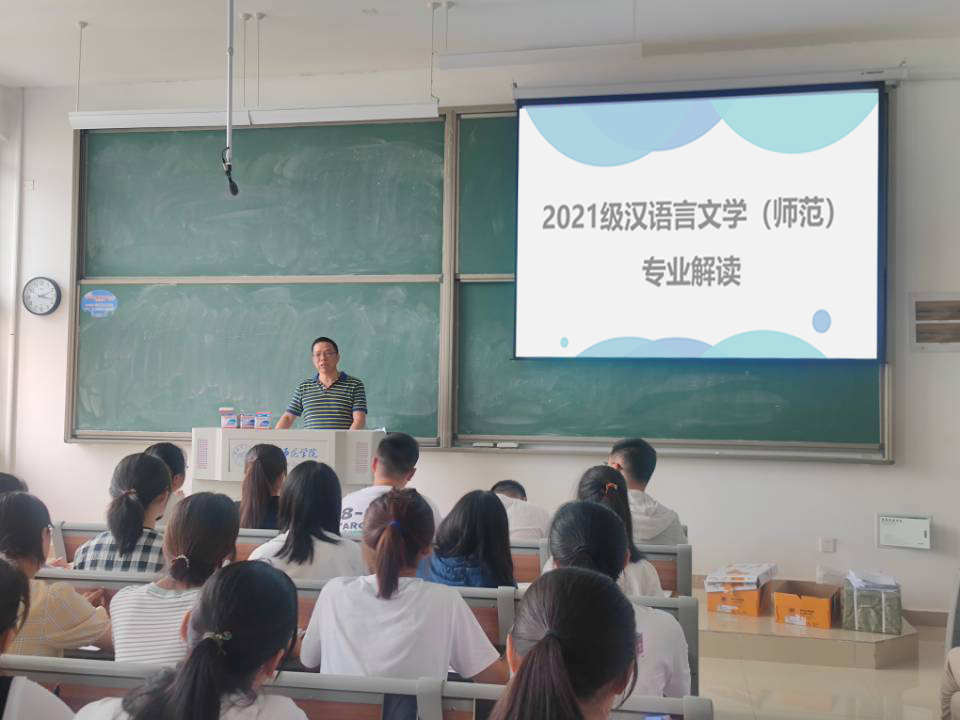 为了让刚迈入大学校园的新生更好地适应大学生活,明确今后四年的目标任务,9月6日下午,beat365中文唯一官网在滨湖校区铭传楼A309为2021级汉语言文学(师范)专业全体新生开展入学教育,主要就《汉语言文学专业人才培养方案》和《学业指导手册》进行了详细解读。beat365中文唯一官网党委书记李旺生、党委副书记陈好、副院长何旺生、中文系教工支部书记张登林等参加了这次会议。