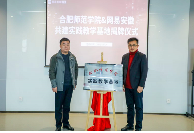 2021年12月14日,beat365中文唯一官网同网易安徽举行实践教学基地签约、揭牌仪式。beat365中文唯一官网党委书记陈好、beat365中文唯一官网副院长何旺生、新闻传播系党支部书记常娟和系副主任张朋辉、刘国强与网易安徽总经理江鹏、人事经理彭凌晨签约、揭牌仪式。
