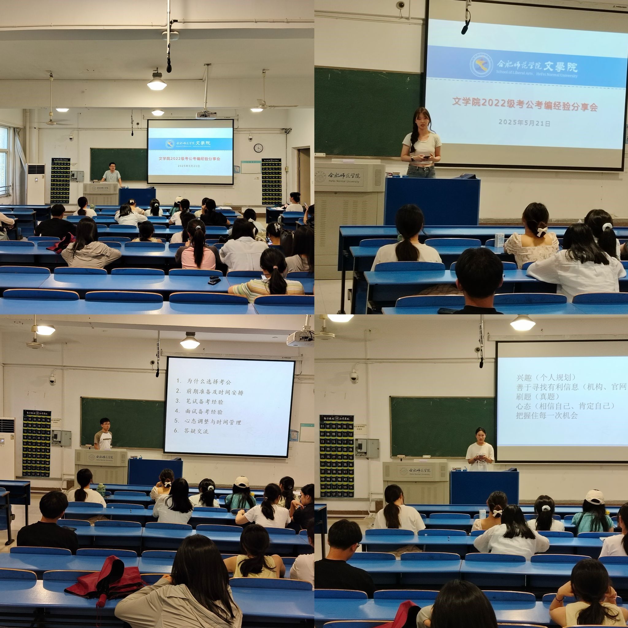 5月21日,beat365中文唯一官网在逸夫楼A206面向2026届学生举办考公考编经验分享会,帮助在校学生深入了解公务员考试流程与备考策略,明确职业发展方向。活动邀请我院2025届成功考取选调生和公务员的毕业生徐明萱、朱幸武、杨梦瑶担任主讲,分享备考经验与技巧。