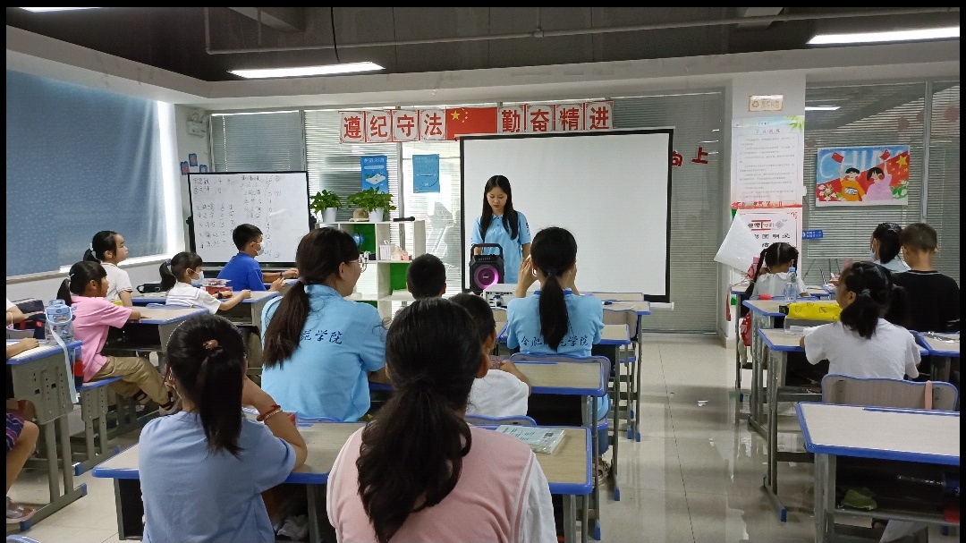 经过了20天的陪伴,学堂的小先生与小学员们到了分别的时刻。时间总是太快,让人只能回味。李煜乾结业仪式上说:“我还记得你们第1天来时的笑脸,希望你们能一直快乐的成长”。学堂小先生们展示了这20天的优秀成果。由程薇薇,金雨彤同学分别带孩子们唱歌和展示了孩子们平时创作的优秀画作。孩子们口中唱着歌,盯着这些画作,往日时光在脑海里一遍一遍的浮现。之后,学堂的小先生们给每一位同学都颁发了礼物。我们希望的是每一位同学在日后的生活里都能够不断的精进自己,拼搏自身,永无终点。