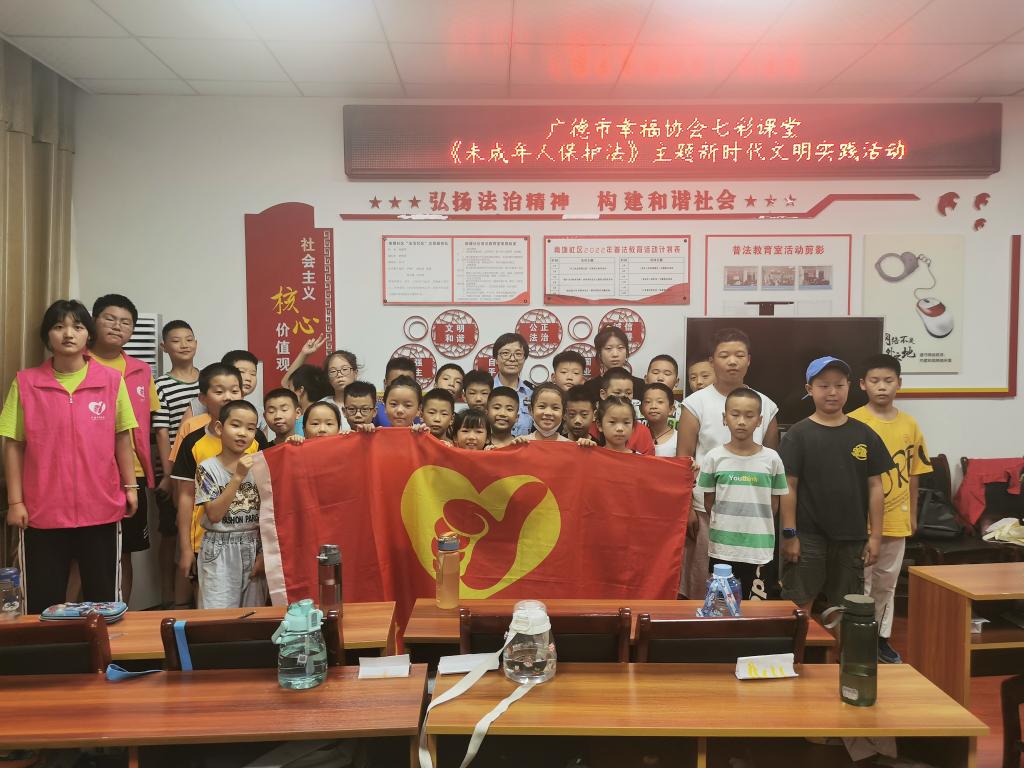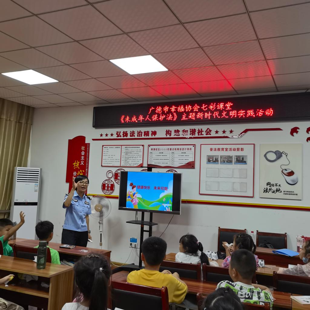 为进一步增强未成年人法治观念,提高未成年人自我保护意识,2022年7月15日在beat365中文唯一官网“七彩行知学堂”(南塘社区)展开《未成年人保护法》主题教育活动。出席此次活动的有广德市公安局陈丽娟警官、广德幸福协会的志愿者以及32位学生。