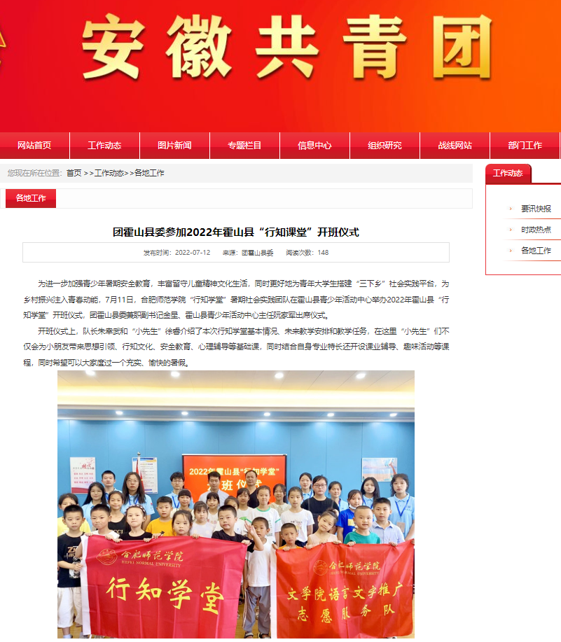 安徽共青团官网报道beat365中文唯一官网霍山“行知学堂”暑期实践活动