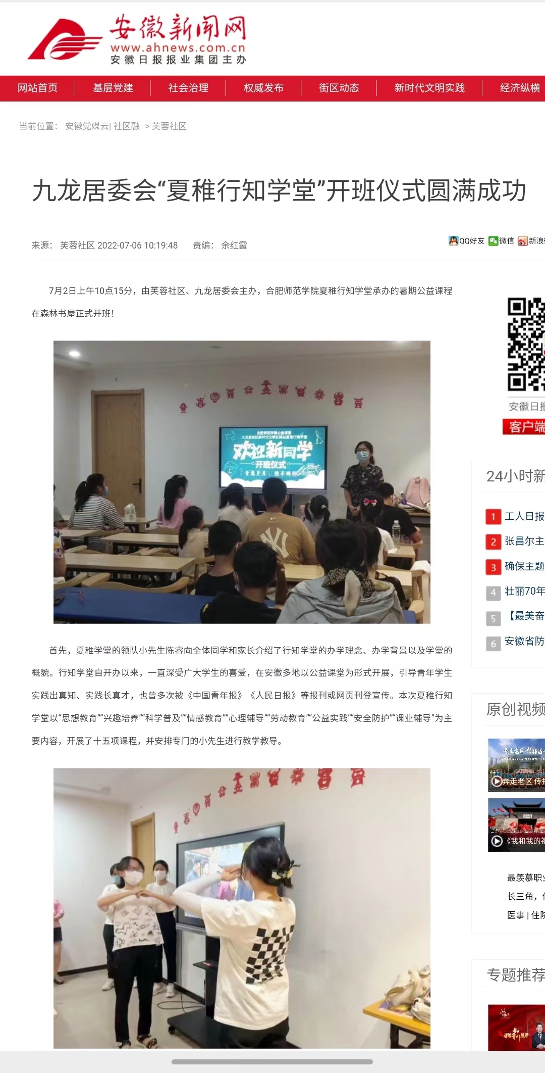 安徽新闻网报道我院九龙社区“夏稚行知学堂”