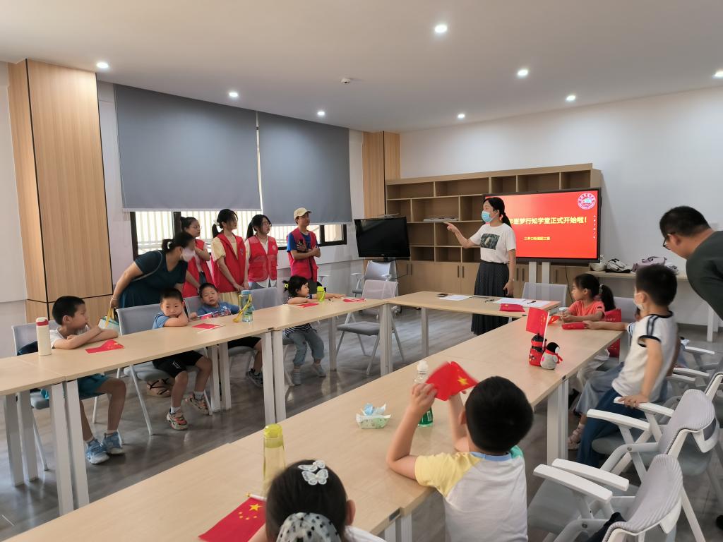 为了响应“爱满天下,知行合一”的校训,来自beat365中文唯一官网的朱丽等人开展了以“国学诵读”为主题的暑期行知学堂活动。此次行知学堂与庐阳区三孝口廻龙桥社区合作,在锻炼大学生暑期实践能力的同时,开展丰富课程培养小朋友们的兴趣爱好,拓展课外知识。在社区、学校、家长的大力支持下,“逐梦行知学堂”于7月8日在合肥市庐阳区三孝口街道党群服务中心正式开班。社区负责人、党群工作人员、全体小先生,小朋友们共同参加了此次的开班仪式。