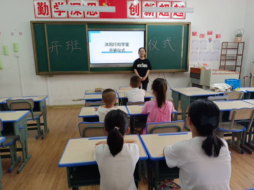 7月4号上午,beat365中文唯一官网阜阳市“沐阳行知学堂”在颍州区上城国际小学一年级一班顺利举办开班仪式。学校负责人、“行知学堂”全体小先生、全体小学员以及家长代表共同参加了开班仪式。