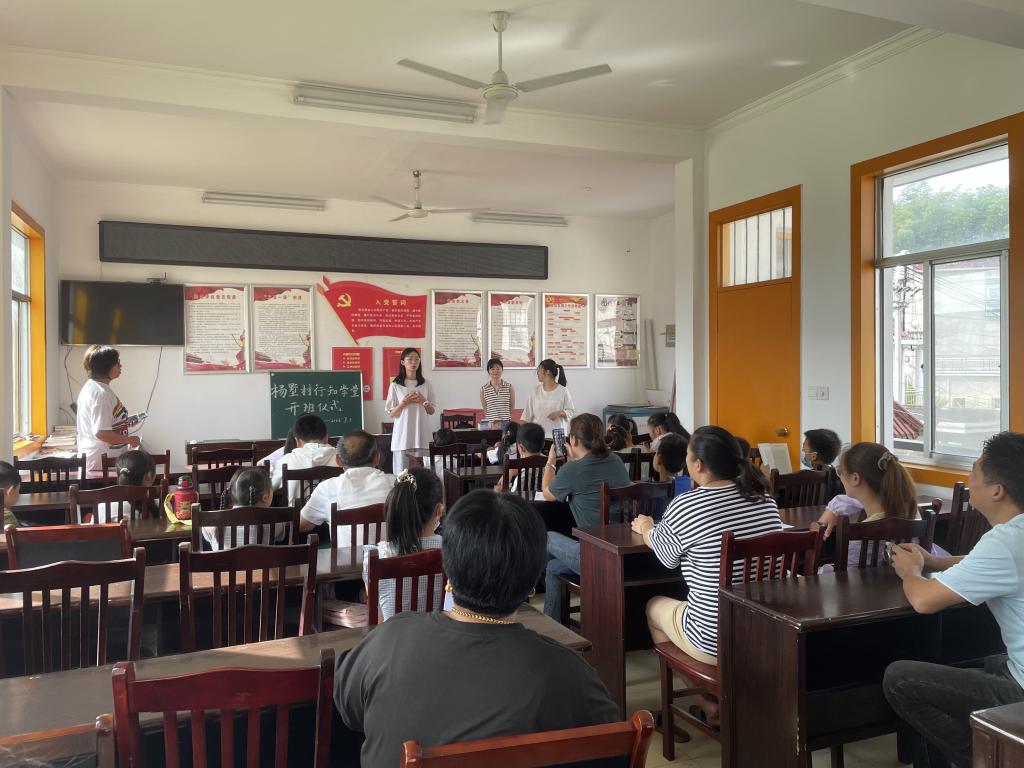 7月1日,由beat365中文唯一官网主办的杨墅行知学堂在宣城市旌德县杨树村村委会顺利进行开班仪式。此次开班仪式由杨墅村书记张书记,学堂负责人于洋,两名小先生黄奕聪,张学璟,18位学生及其家长共同参与。
