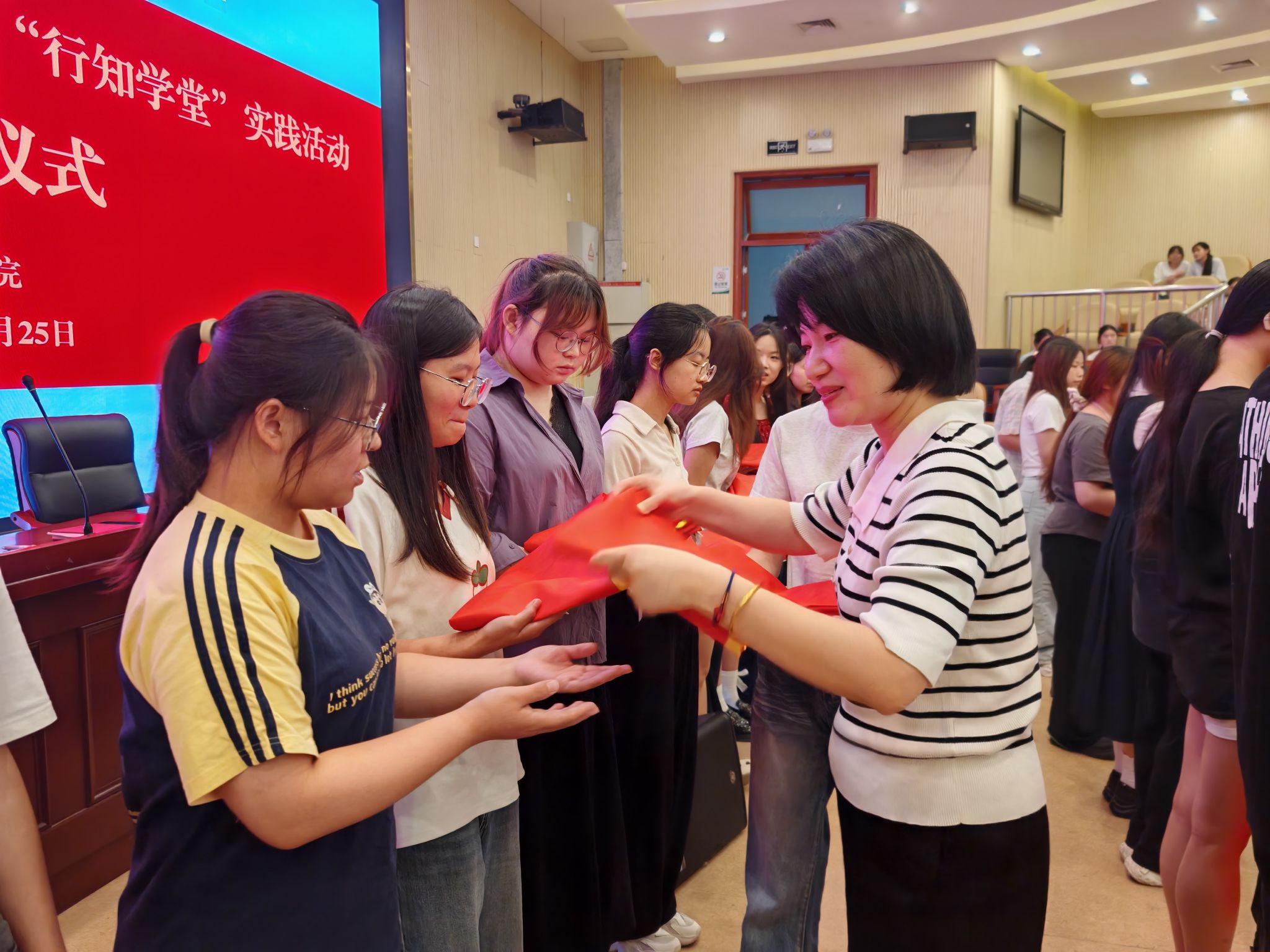 活动现场,还举行了行知学堂授旗仪式,夏娟为参与行知学堂的各实践团队授旗。全体学堂负责人接过旗帜,也接过了这份沉甸甸的责任与使命,小先生们将带着热情与责任,在行知之路上播撒知识与希望,为孩子们带来难忘的学习体验,也为自己的青春留下浓墨重彩的一笔。