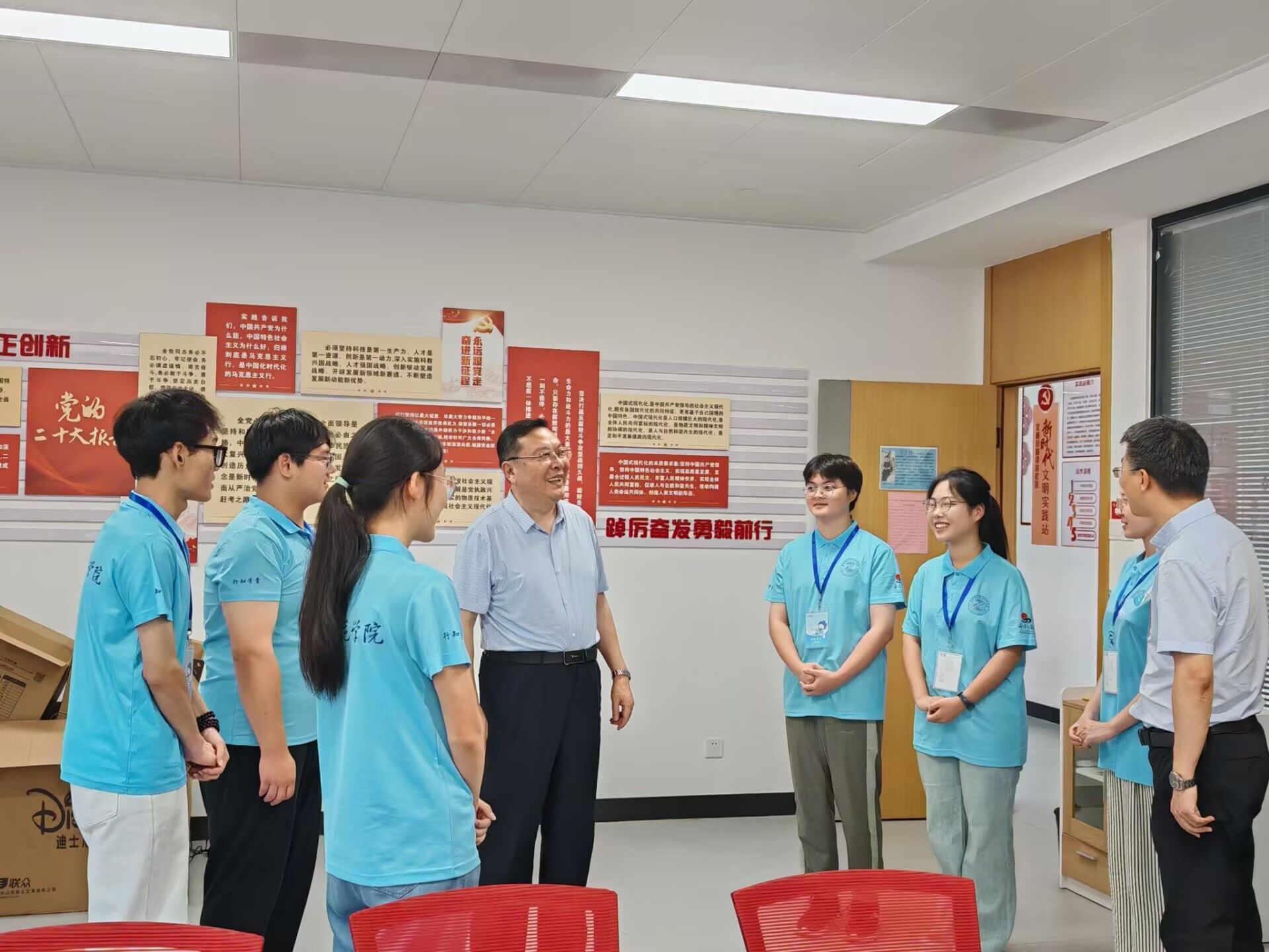 7月7日,院党委书记徐成钢在党政办公室、beat365中文唯一官网等负责人陪同下,赴包河区义城街道迎淮社区走访慰问正在开展暑期社会实践的行知学堂“小先生”与“小学员”,查看暑期行知学堂开办情况,实地调研乡村振兴、经济社会发展和基础教育实际需求。义城街道党工委委员戴晖、迎淮社区党委书记束飞热情接待了徐成钢一行。