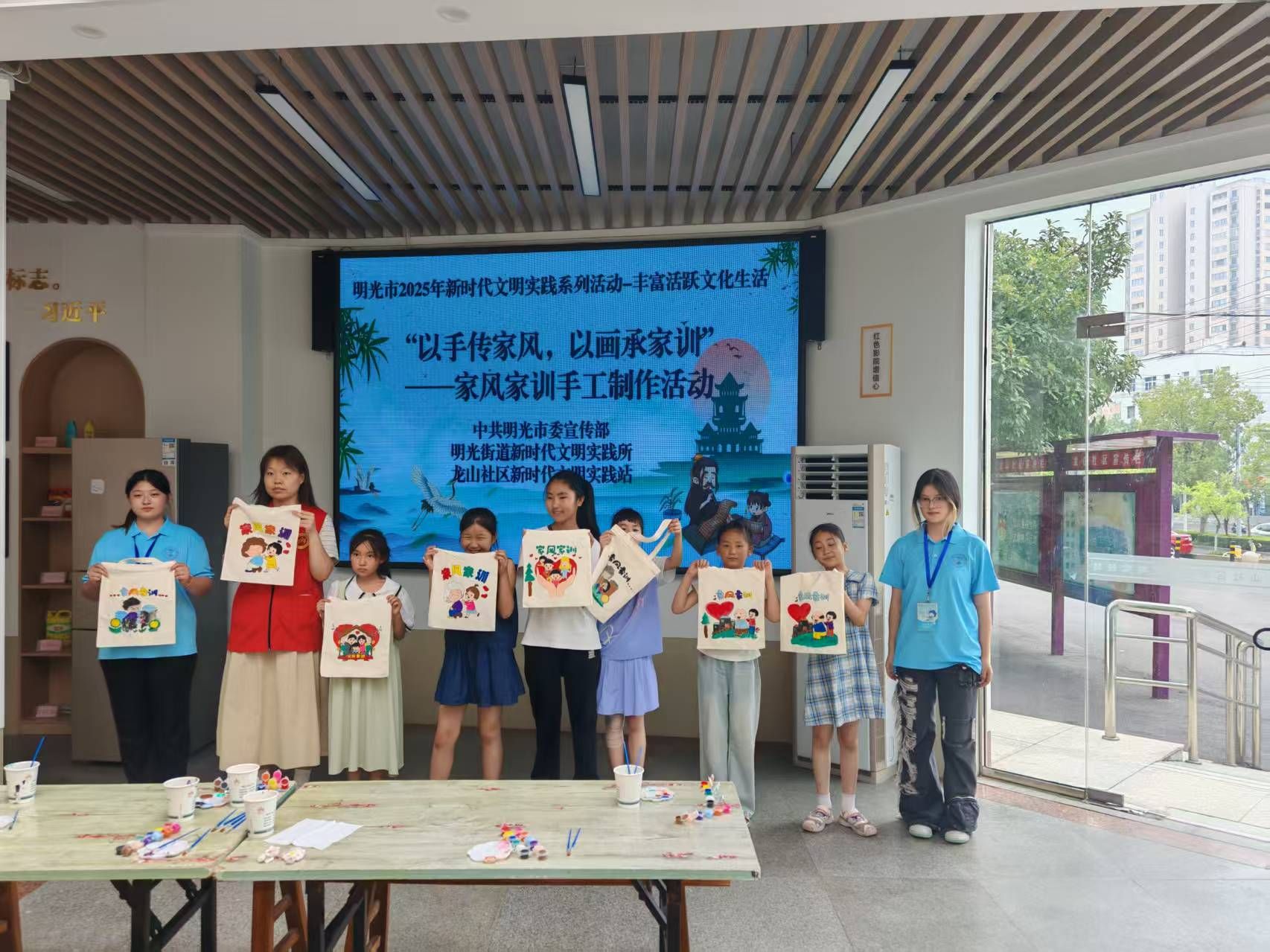 此次“以手传家风,以画承家训”活动,是明光龙山行知学堂践行育人使命、传承优良家风的生动实践。通过创意手工的形式,让亲子家庭在共同创作中感悟家风内涵。这些承载着家训的帆布包,将成为孩子们成长的“精神行囊”,而活动播撒的家风种子,也必将在更多家庭中生根发芽,代代相传。(beat365中文唯一官网,教育与心理科学学院:戴钰人)