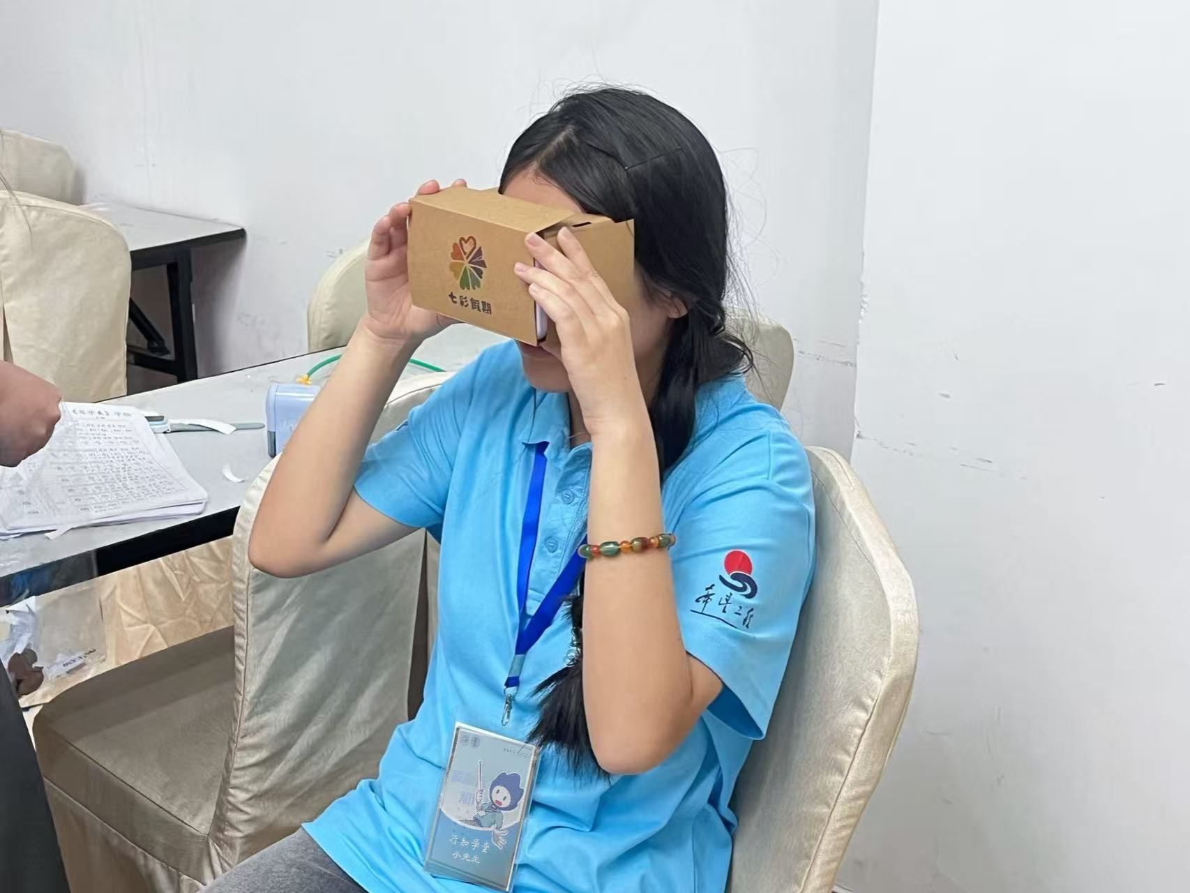 “大家准备好了吗?让我们开启奇幻之旅!”随着王欣宇的号召,孩子们纷纷举起手中的模拟器,“小先生”们则同步打开手机里的VR视频资源。当手机被固定在模拟器前端,神奇的一幕发生了:孩子们的眼睛紧贴镜片,原本平静的表情瞬间被惊喜取代。