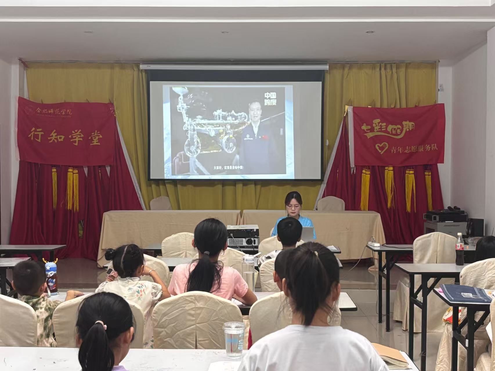 科技浪潮奔涌向前,青少年作为未来创新力量的储备军,对前沿科技的认知与探索尤为重要。近日,锦绣中心方兴社区翰林行知学堂依托团中央青年志愿者指导中心“七彩假期”暑期志愿服务项目的优质资源,为方兴辖区的孩子们精心打造了一场以“感受中国科技 揭示VR秘密”为主题的科技体验课程。通过理论讲解、互动实践与沉浸式体验相结合的方式,让孩子们在欢声笑语中触摸科技脉搏,在动手实践中体悟科研精神。