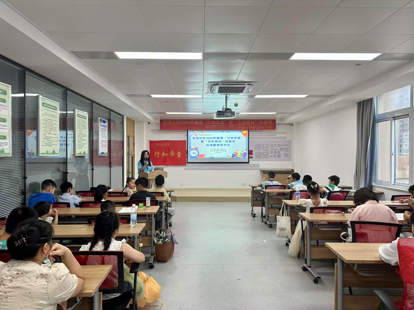 颁奖仪式上,学堂对在日常学习中表现突出的孩子颁发了“闪亮小榜样”奖项,对坚持21天微信群聊阅读打卡的孩子们颁发了阅读打卡奖状和相关礼品。这一活动由妇联精心策划,行知学堂全力协助,旨在鼓励孩子们养成良好的阅读习惯,让书香伴随他们成长。